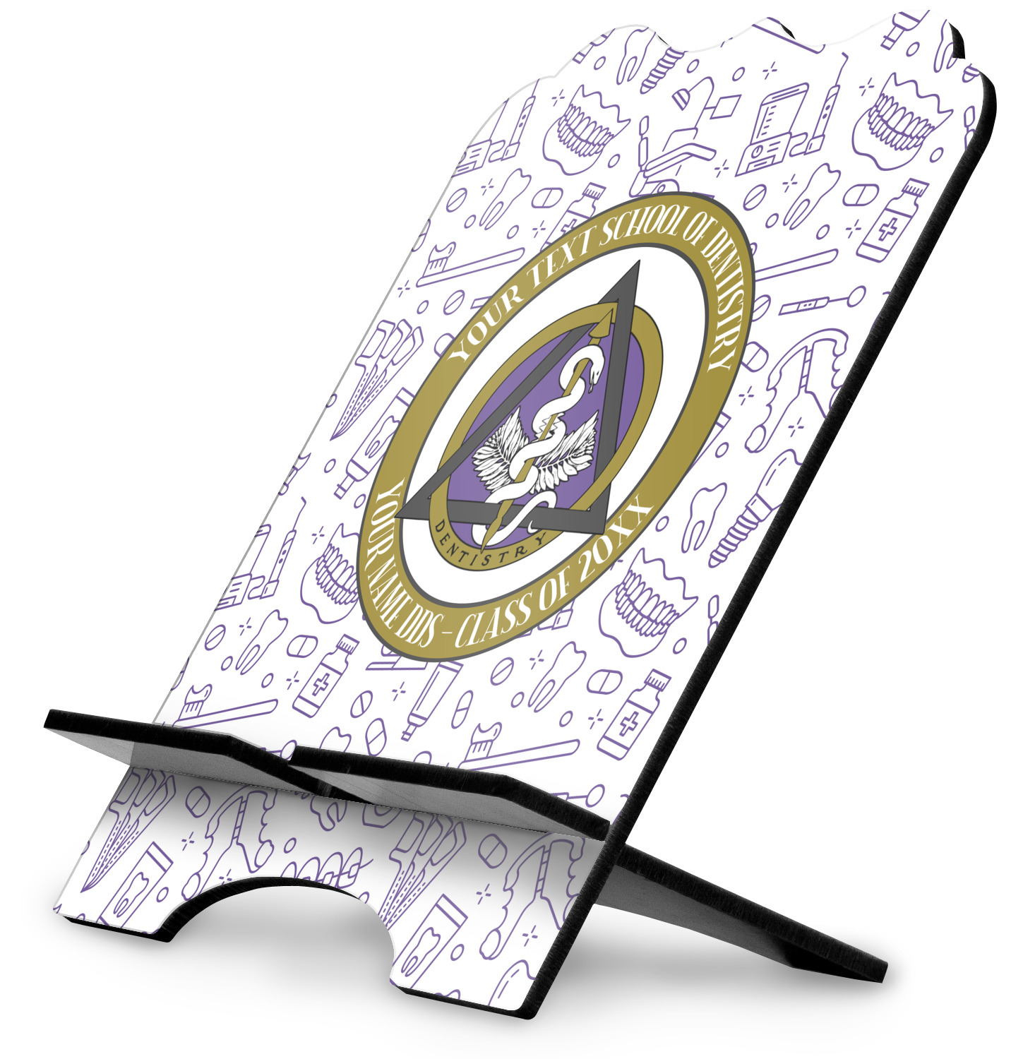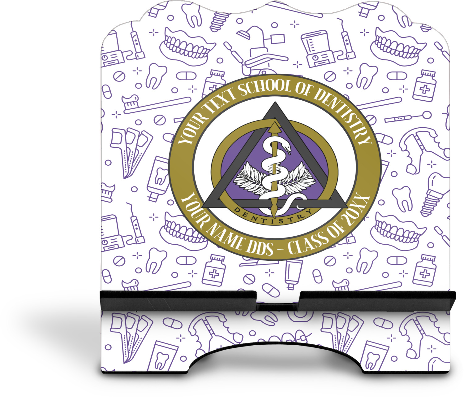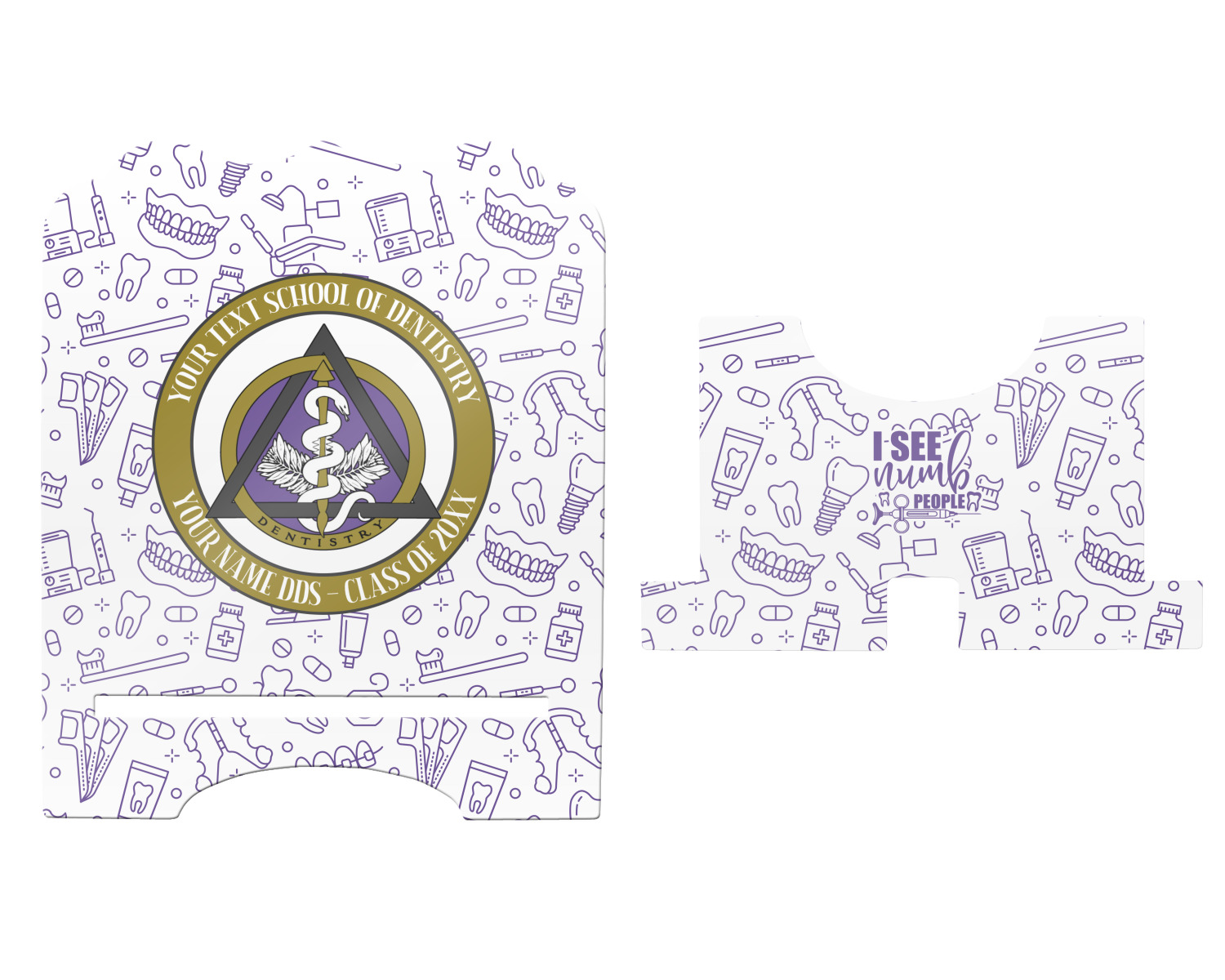 This design features the dental insignia (aka emblem, symbol, logo) at the center with personalization in a circle around the emblem.You can customize the name of the dental school, as well as the name of the dentist and the year they graduated.