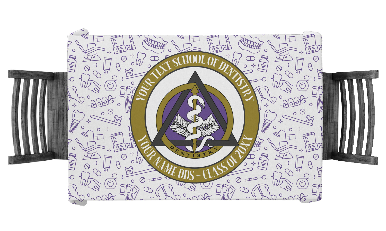 This design features the dental insignia (aka emblem, symbol, logo) at the center with personalization in a circle around the emblem.You can customize the name of the dental school, as well as the name of the dentist and the year they graduated.