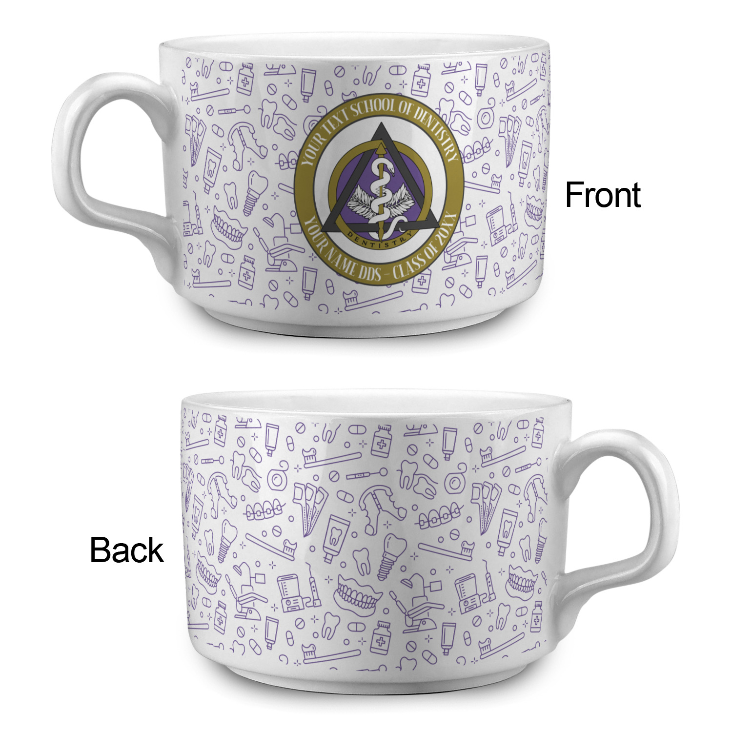 Personalize your cup with the perfect design! The white ceramic makes for a bright background to whatever personalization you decide to add to your little cup. Give your tea or coffee some class! Choose from thousands of patterns and fills in our system to fit your personality! Change whatever elements you like from the text to the ribbons to the graphics.