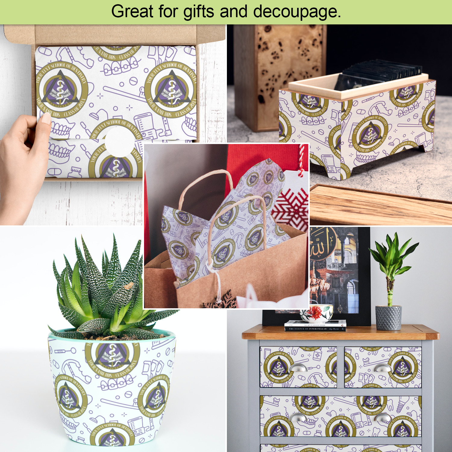 With our tissue paper sheets, you can now print whatever you want to decoupage. You don't have to figure out how to get text on top of purchased papers. You can design it all into a sheet(s) and decorate items exactly the way you want to.