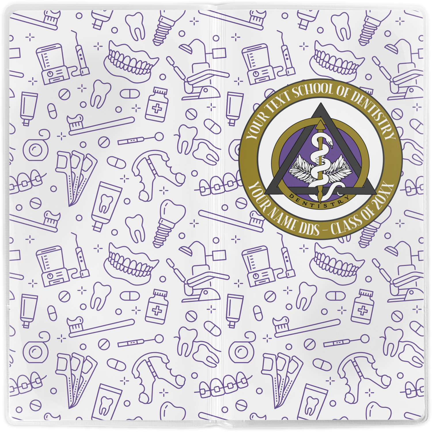 This design features the dental insignia (aka emblem, symbol, logo) at the center with personalization in a circle around the emblem.You can customize the name of the dental school, as well as the name of the dentist and the year they graduated.