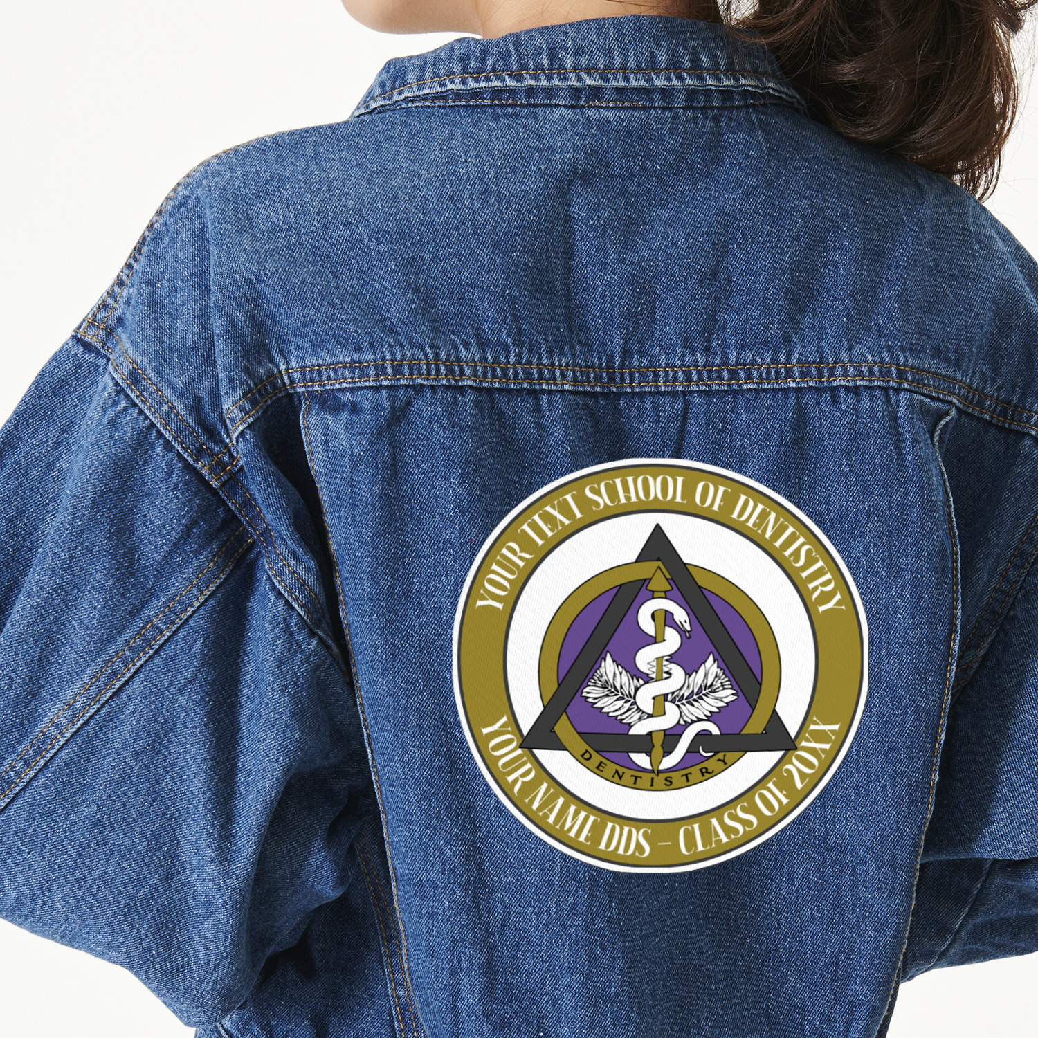 This design features the dental insignia (aka emblem, symbol, logo) at the center with personalization in a circle around the emblem.You can customize the name of the dental school, as well as the name of the dentist and the year they graduated.