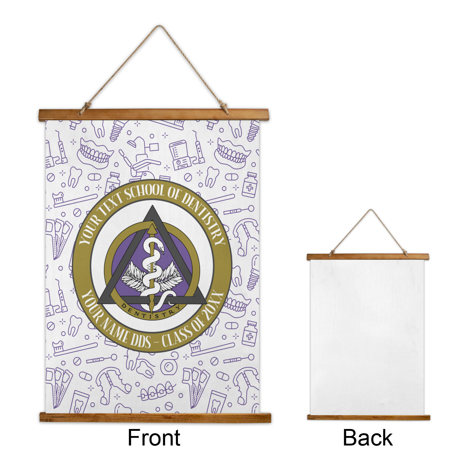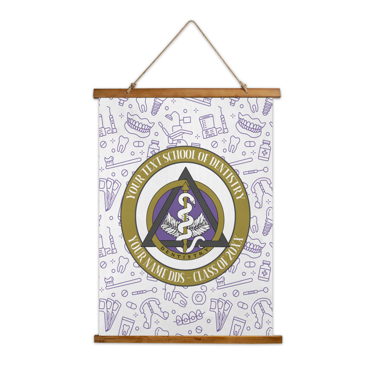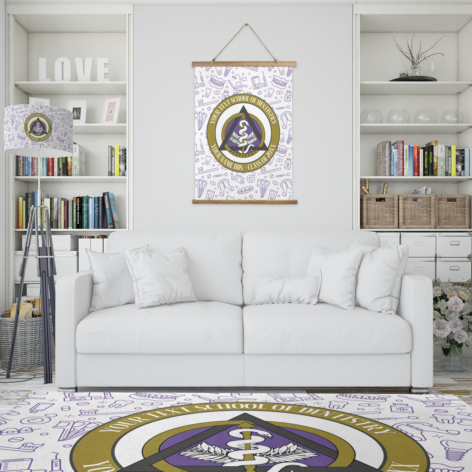 This design features the dental insignia (aka emblem, symbol, logo) at the center with personalization in a circle around the emblem.You can customize the name of the dental school, as well as the name of the dentist and the year they graduated.