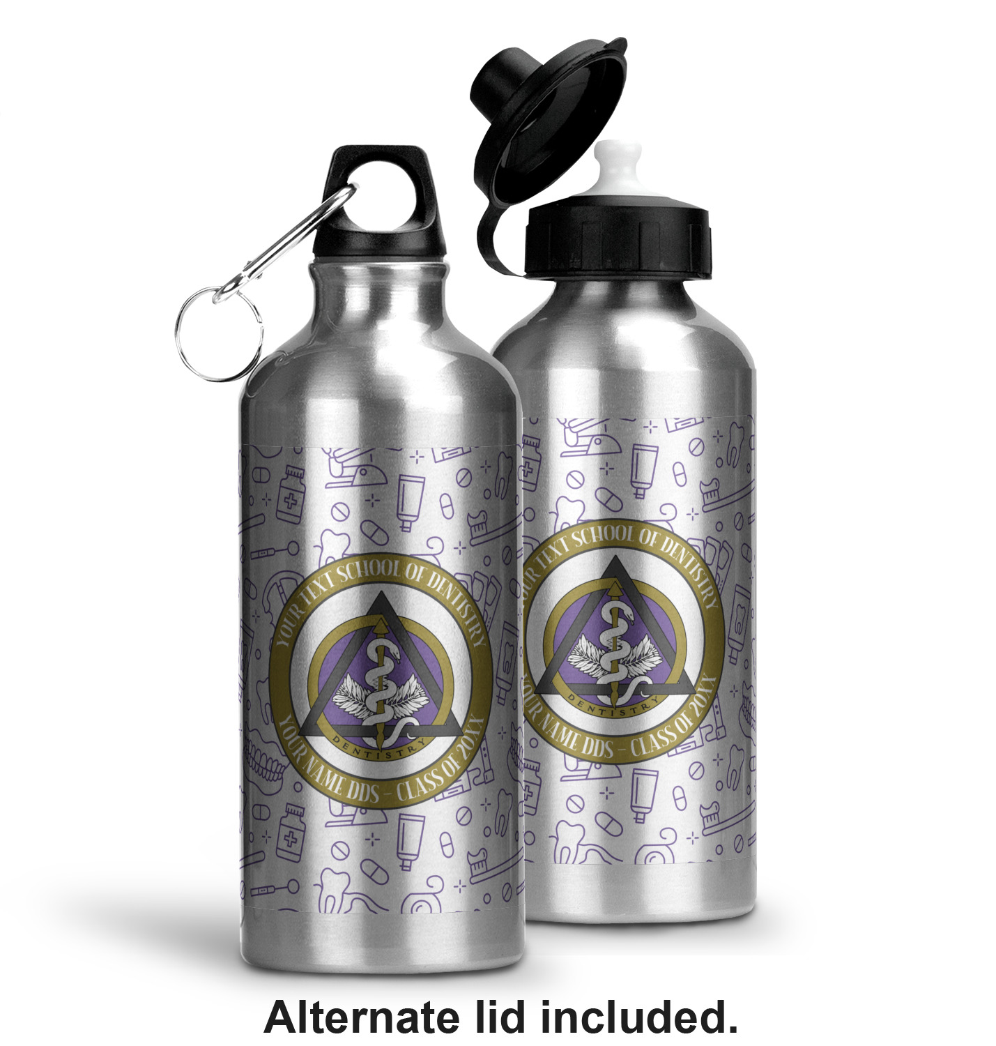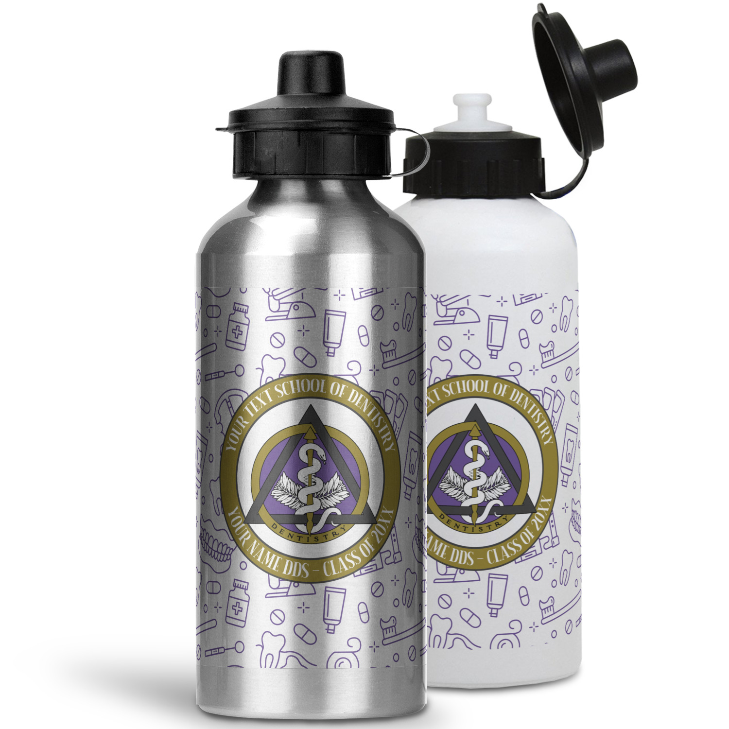 This design features the dental insignia (aka emblem, symbol, logo) at the center with personalization in a circle around the emblem.You can customize the name of the dental school, as well as the name of the dentist and the year they graduated.