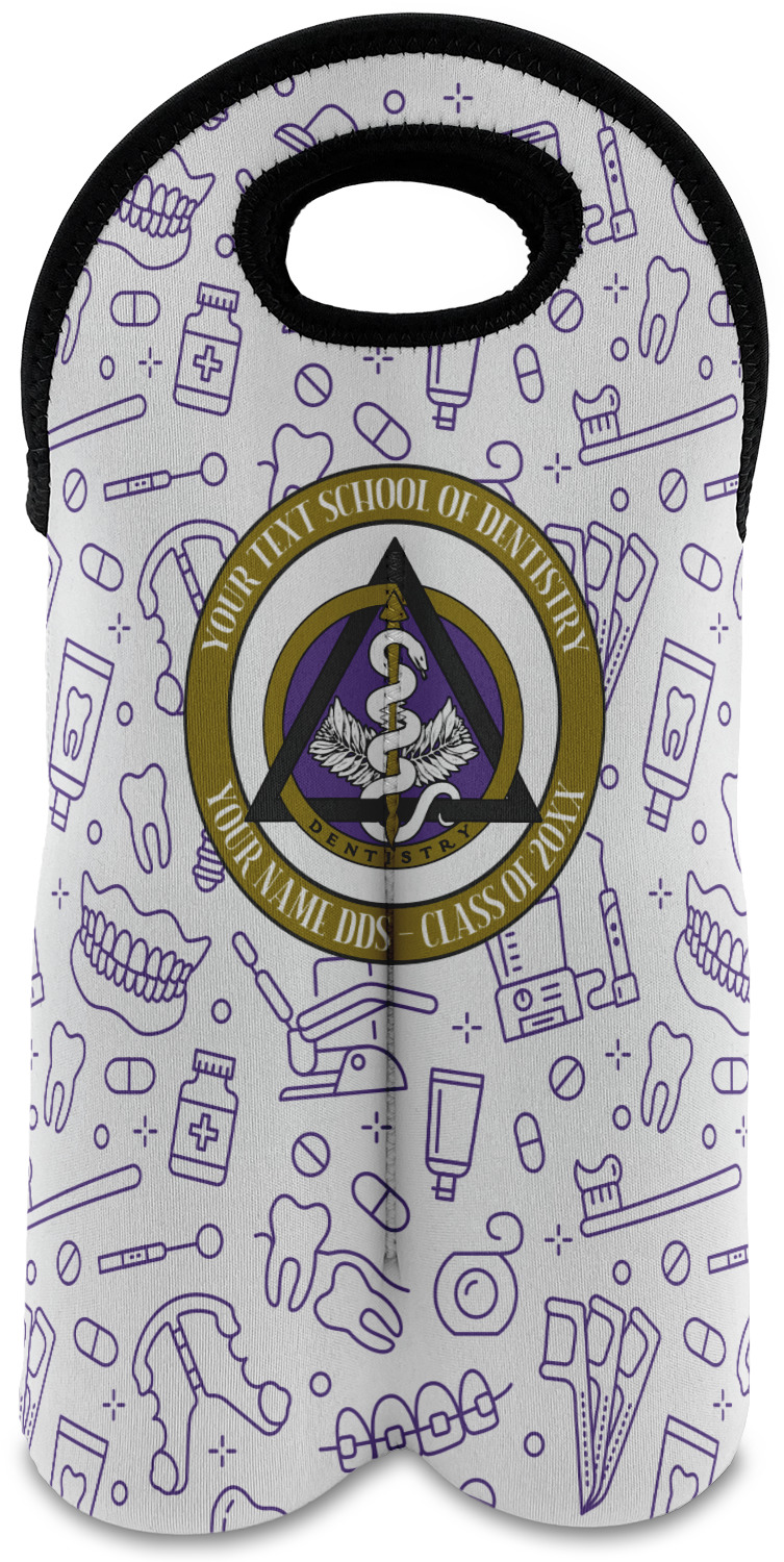 This design features the dental insignia (aka emblem, symbol, logo) at the center with personalization in a circle around the emblem.You can customize the name of the dental school, as well as the name of the dentist and the year they graduated.