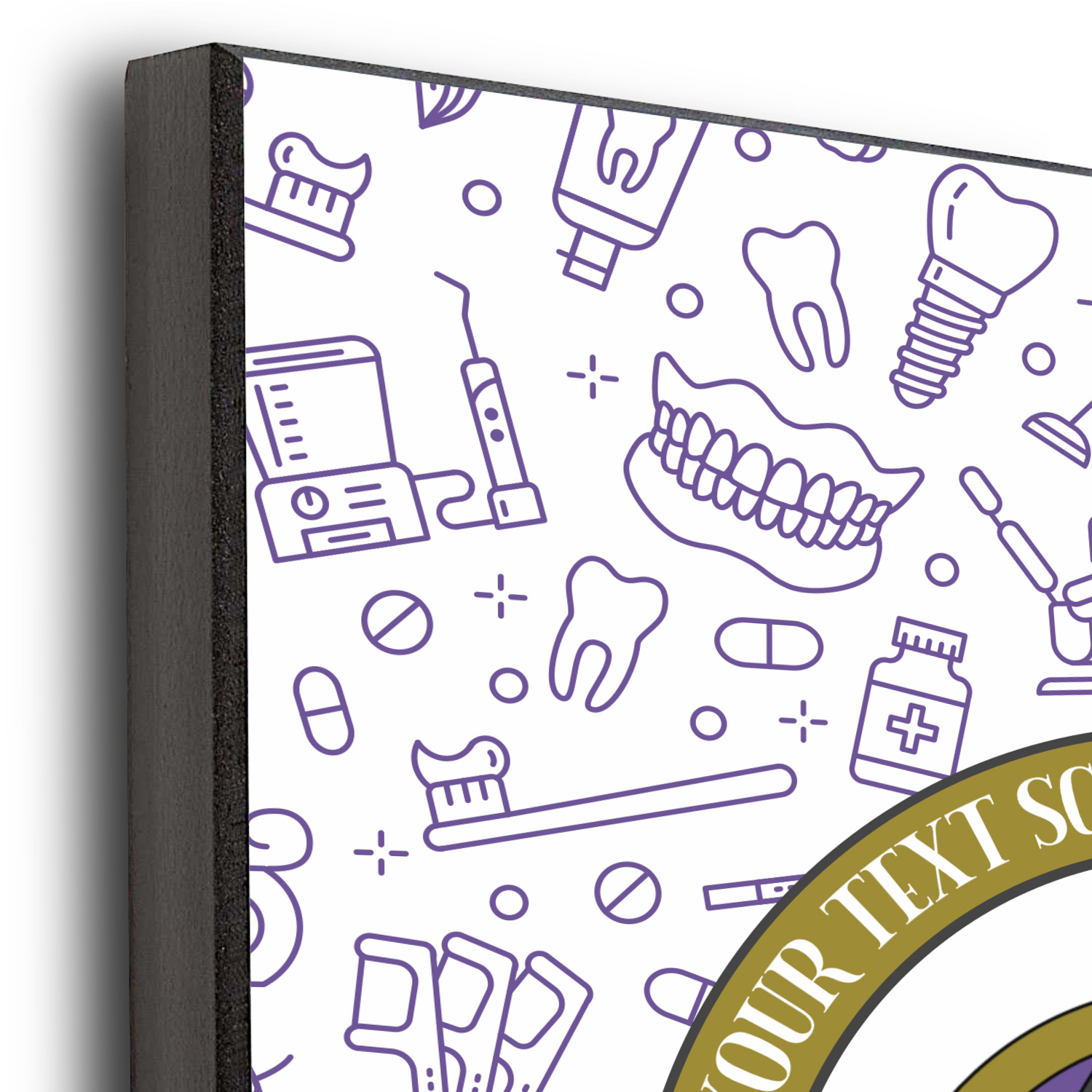 This design features the dental insignia (aka emblem, symbol, logo) at the center with personalization in a circle around the emblem.You can customize the name of the dental school, as well as the name of the dentist and the year they graduated.