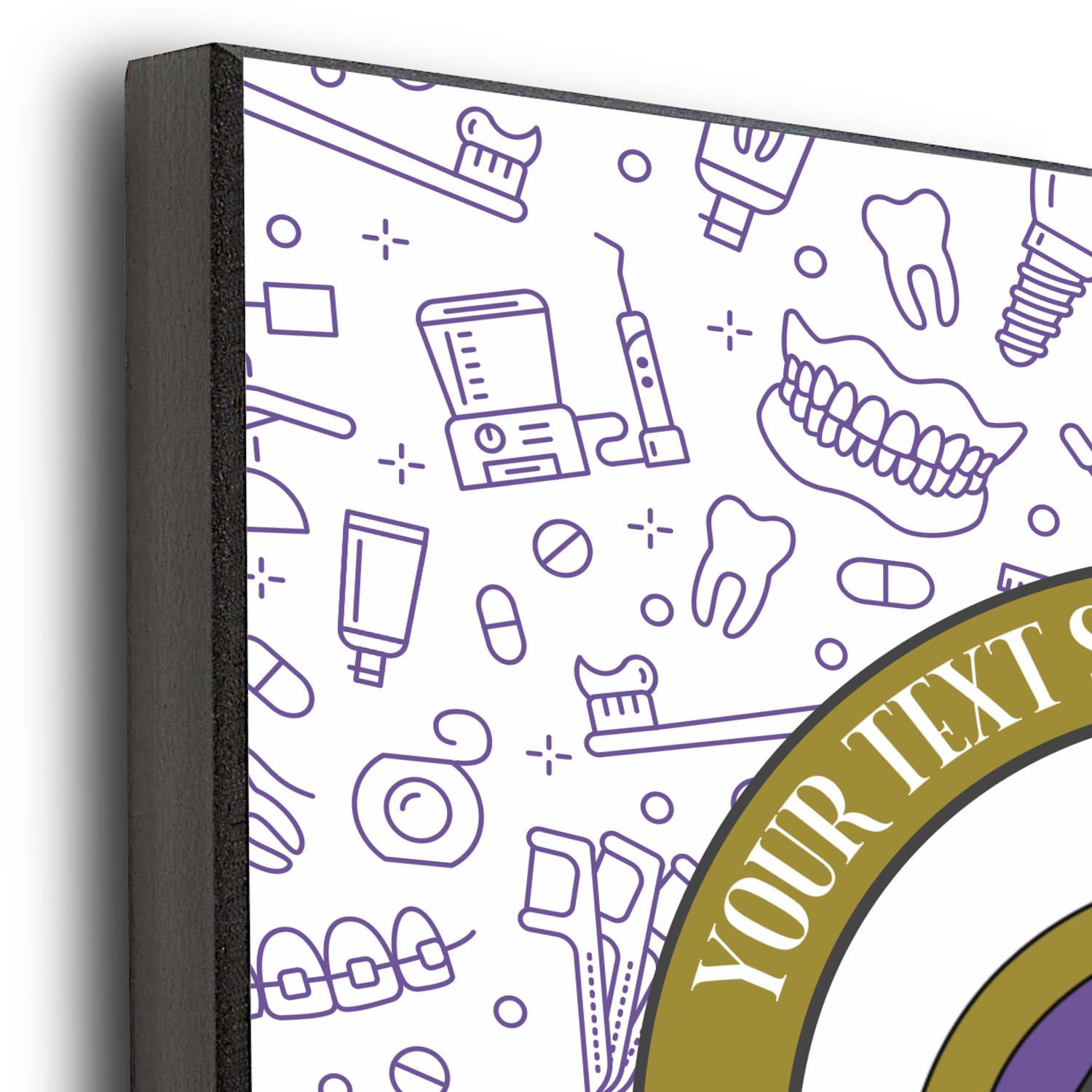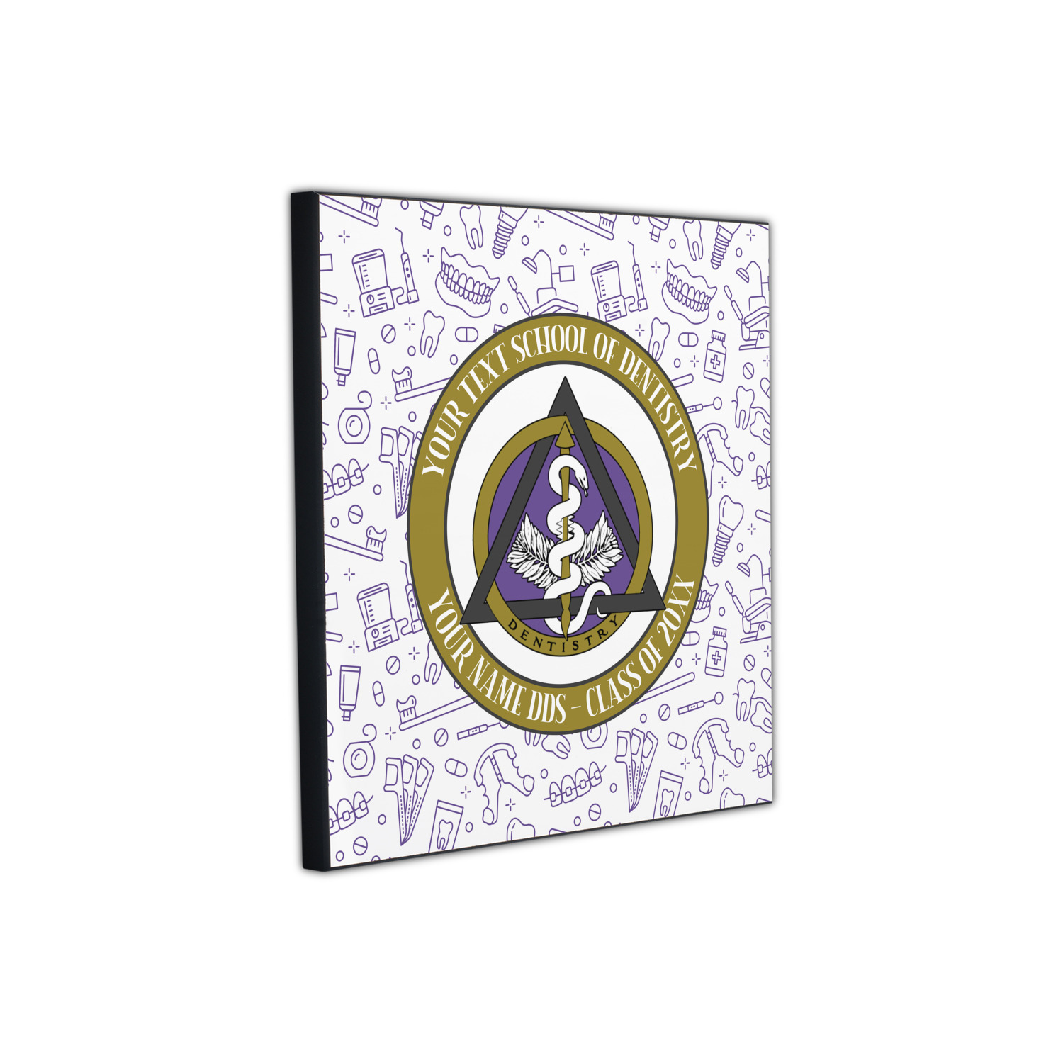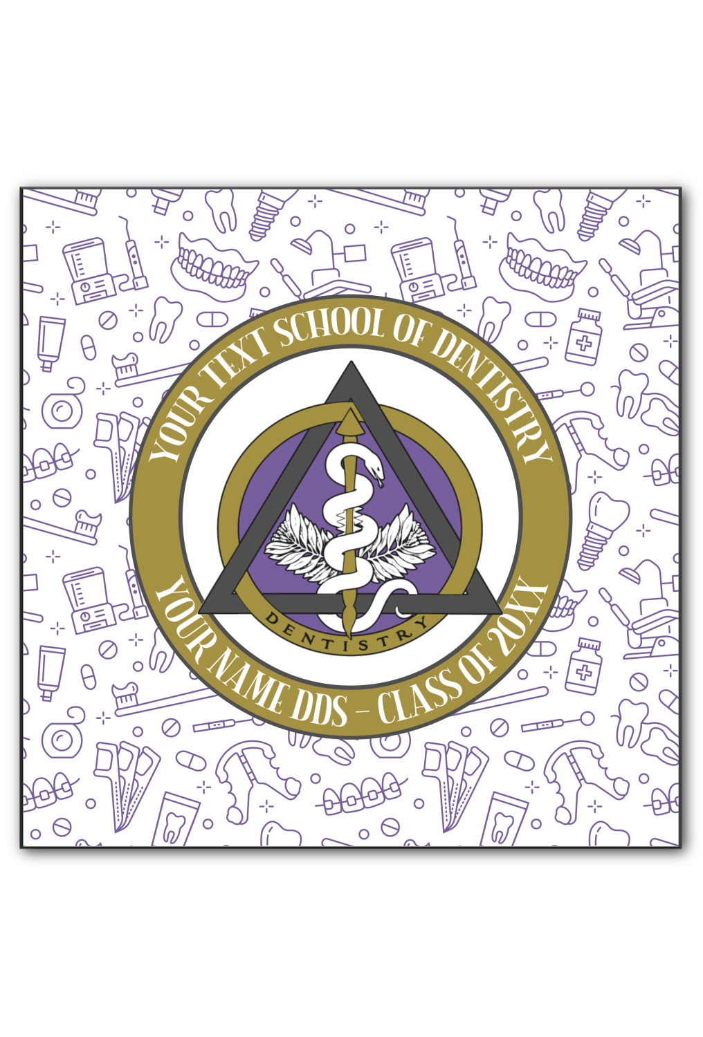 This design features the dental insignia (aka emblem, symbol, logo) at the center with personalization in a circle around the emblem.You can customize the name of the dental school, as well as the name of the dentist and the year they graduated.