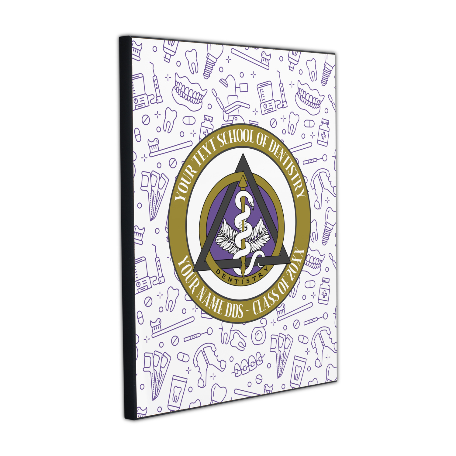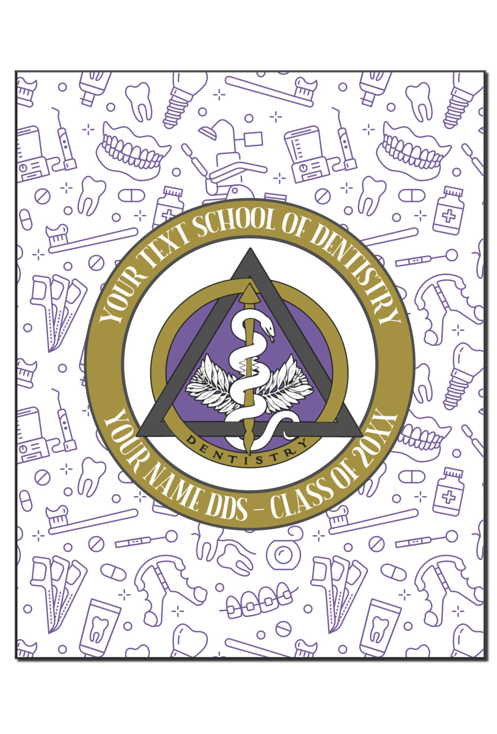 This design features the dental insignia (aka emblem, symbol, logo) at the center with personalization in a circle around the emblem.You can customize the name of the dental school, as well as the name of the dentist and the year they graduated.
