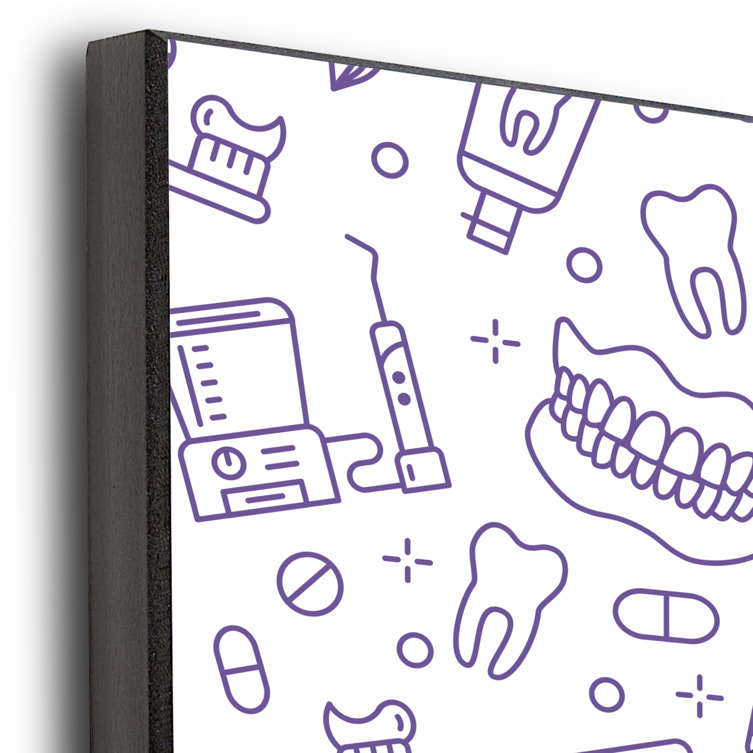 We chose to accent the background with the color lilac from the official dental insignia because lilac conveys compassion, purpose and inspiration AND Dental graduates today incorporate purple on their caps and gowns.