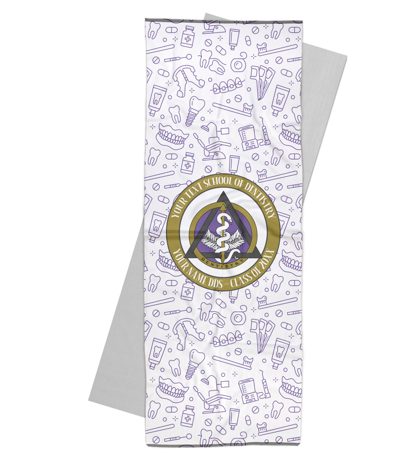 This design features the dental insignia (aka emblem, symbol, logo) at the center with personalization in a circle around the emblem.You can customize the name of the dental school, as well as the name of the dentist and the year they graduated.