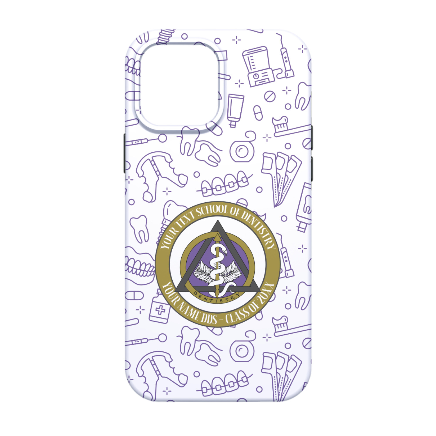 This design features the dental insignia (aka emblem, symbol, logo) at the center with personalization in a circle around the emblem.You can customize the name of the dental school, as well as the name of the dentist and the year they graduated.