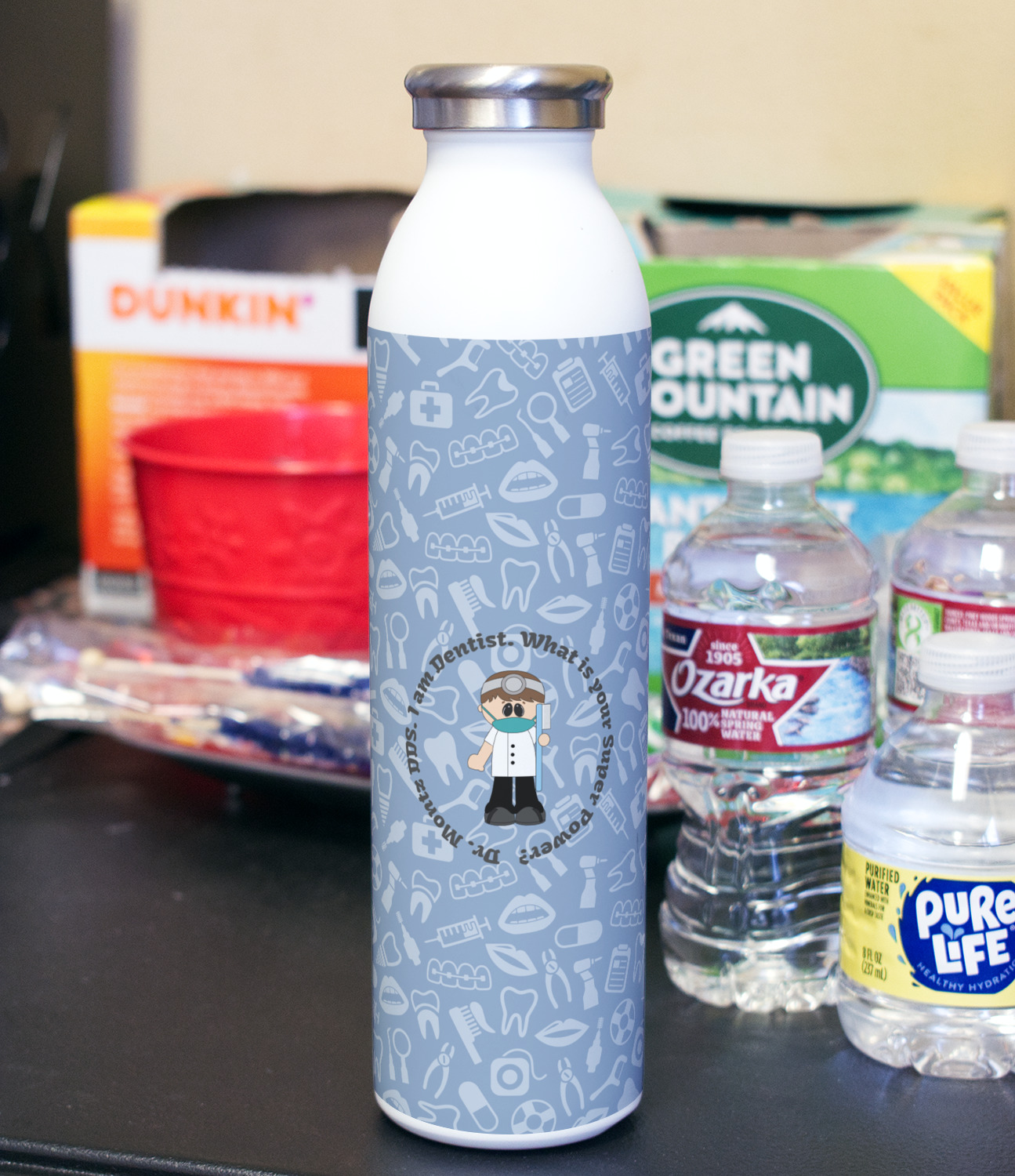 With the double wall insulated construction this bottle will keep drinks cold for 24 hours and hot for 12 hours. The large size allows for a beautiful large artwork space to allow you to make this bottle all your own.