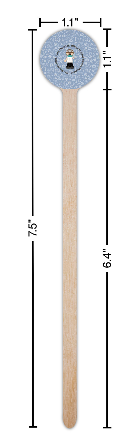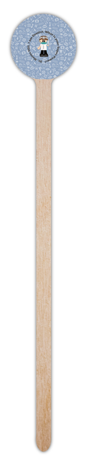This design is a light blue with dark blue accents in its background. The design features a fun little cartoon dentist that will just make you smile. The text surrounding the little dentist will be the perfect place for a dentist pun or your name!