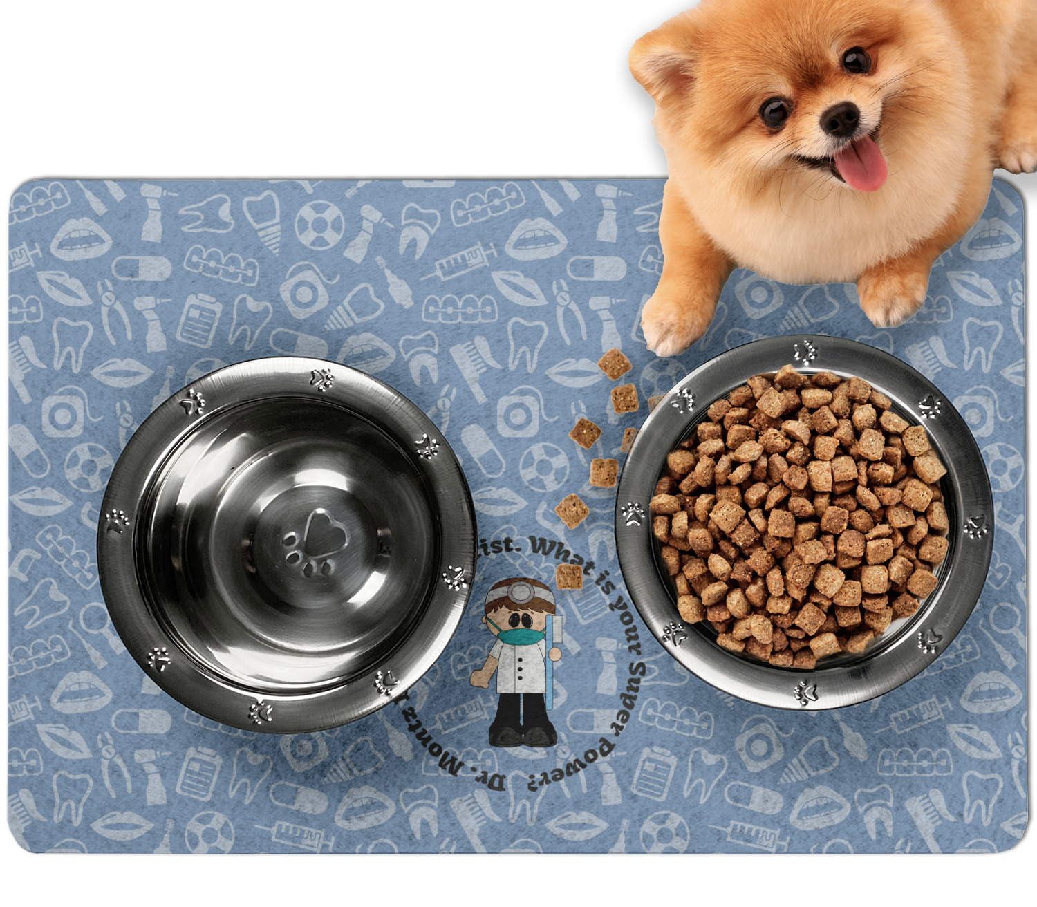 Frustrated with the mess your pets make during mealtime? Personalize a multi-functional dog food mat that prevents spills from reaching your floors, while also incorporating some cute decor to your dog's eating area!