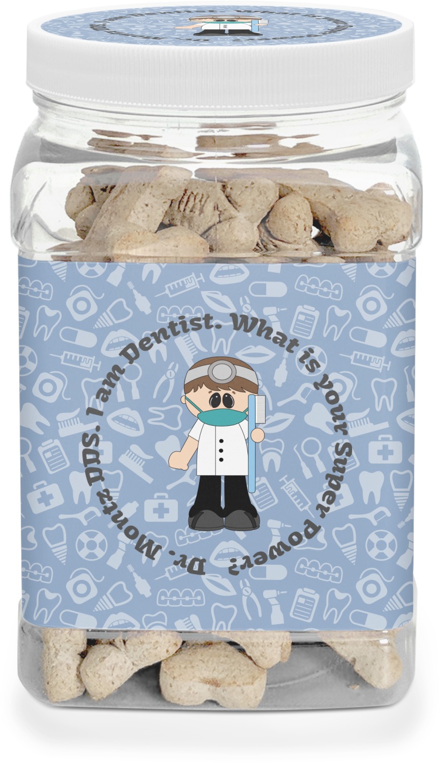 Spoil your pup with a brand new, personalized dog treat container! Your dog will be sure to wag his/her tail whenever he/she catches sight of it perched on your countertop!