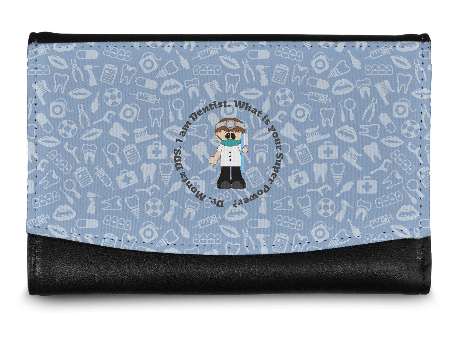 The compact size of this wallet - 5.5in wide, 3.5in tall and 0.75in thick when folded - makes it perfect to hold in hand and small enough to fit in a clutch or a normal size purse. The outside flap is customized with your choice of artwork and closes with a snap closure - with two different snaps to allow it to be adjusted when storing more items - to securely fasten the flap.