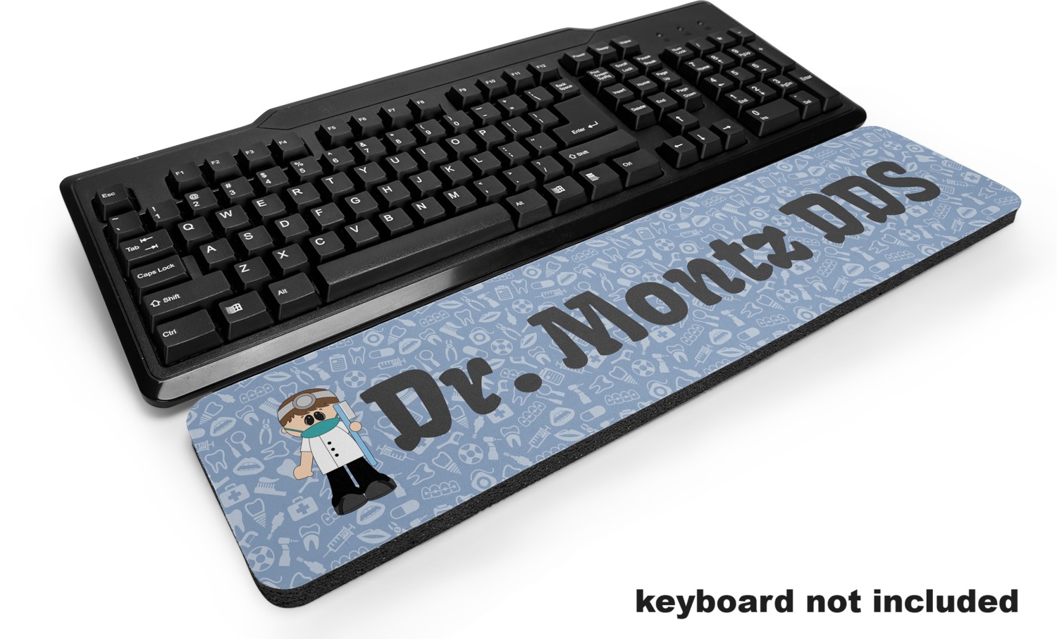 Constructed from a firm rubber that is 0.5" thick, this keyboard pad lends plenty of support to your wrist, while its polyester top feels soft against your skin. Your personalized design is also displayed across this polyester top. At 17.5" x 4", this keyboard wrist support is the same length as most, standard-sized keyboards. With its rounded corners, the pad has a suave, sophisticated appearance, and will complement any keyboard of your choosing.