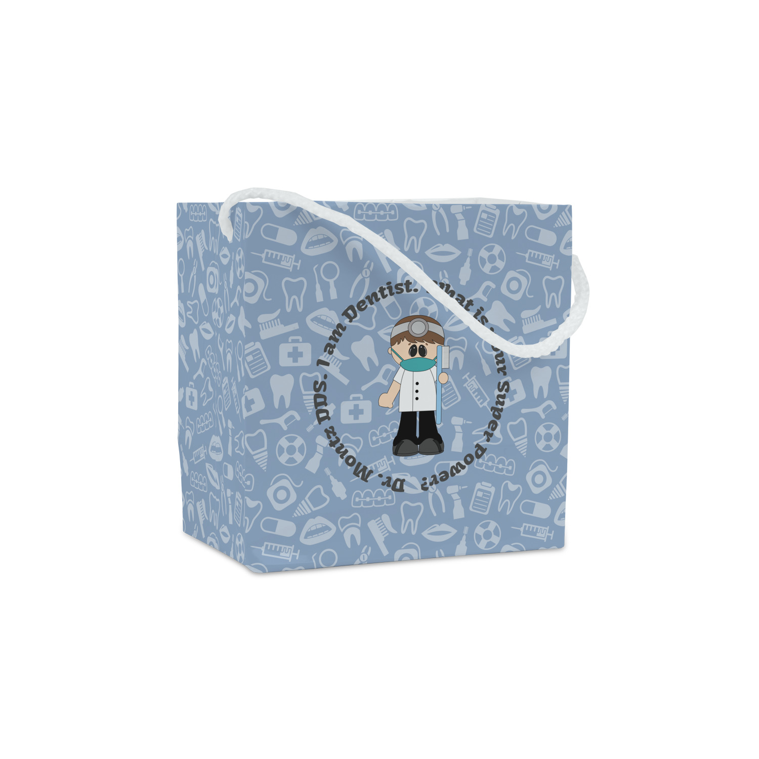 These party favor bags are approx. 5.25" tall x 5.25" wide and 3" deep. They are perfectly sized for party favors such as customized ornaments, specialty chocolates or cookies, etc. The bags will also fit multiple small favors.