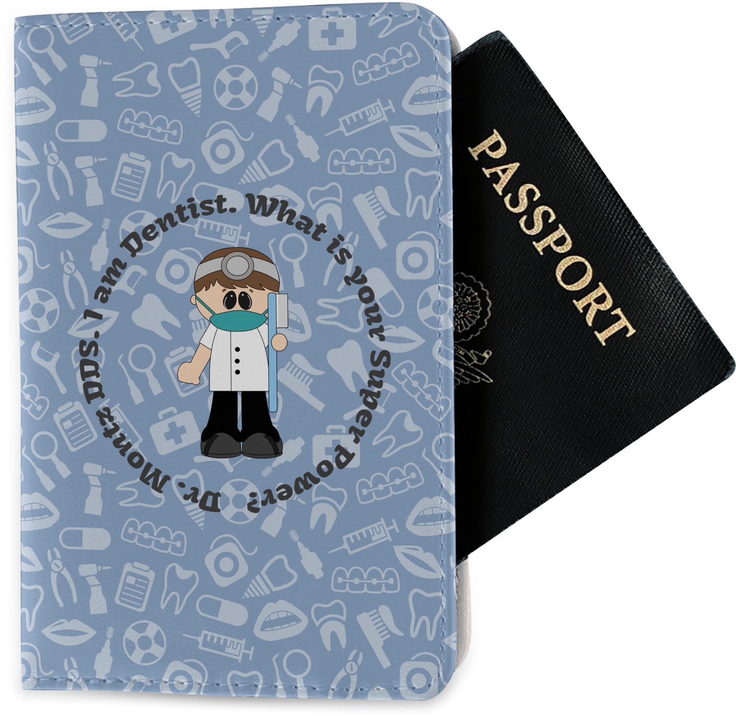 The passport holder has a beautiful inside made of faux leather, while the outside is a smooth slick vinyl like material printed with your personal design.