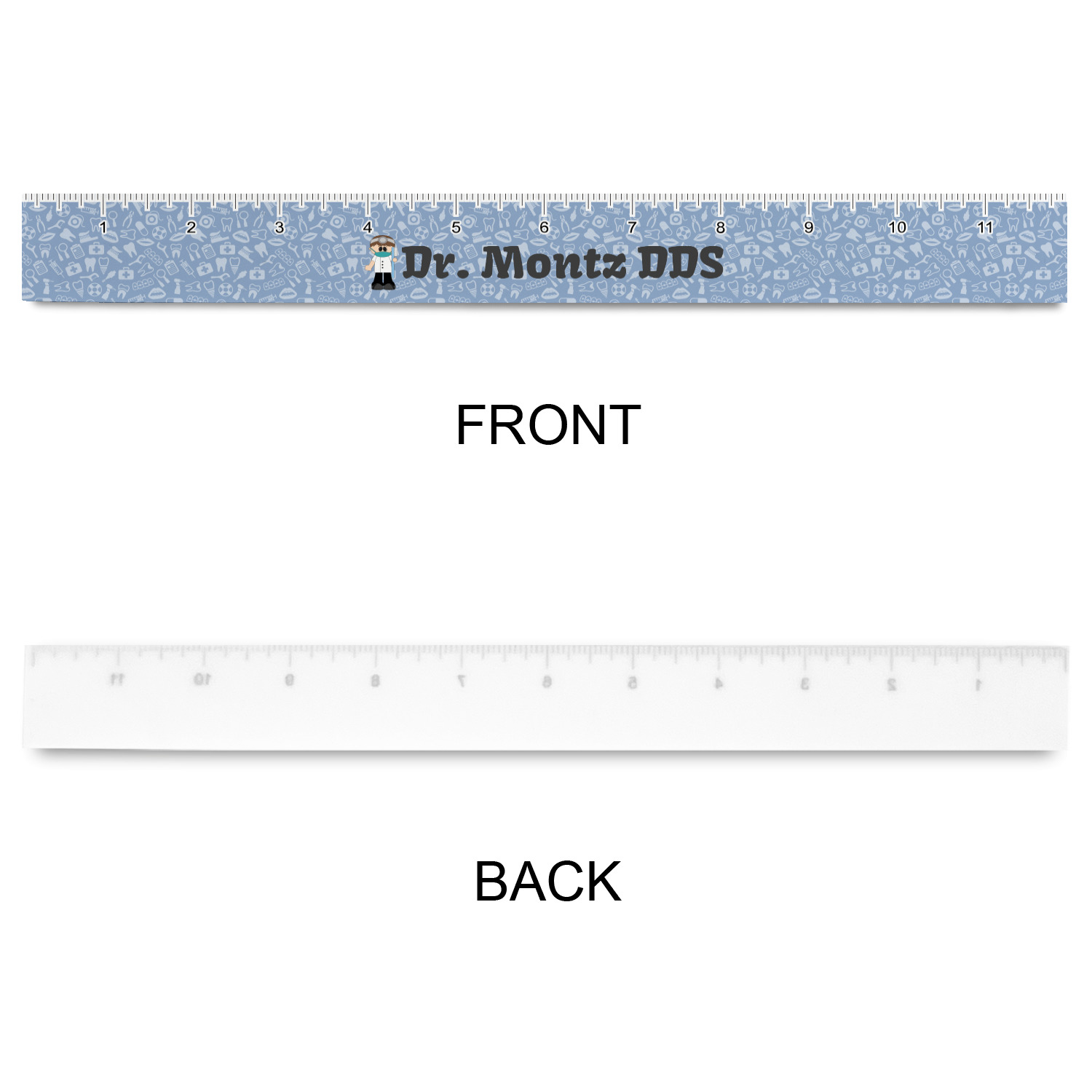 This design is a light blue with dark blue accents in its background. The design features a fun little cartoon dentist that will just make you smile. The text surrounding the little dentist will be the perfect place for a dentist pun or your name!