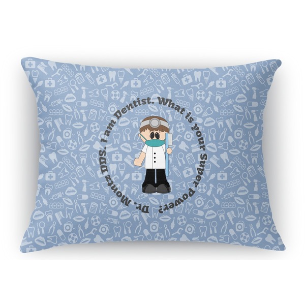 This design is a light blue with dark blue accents in its background. The design features a fun little cartoon dentist that will just make you smile. The text surrounding the little dentist will be the perfect place for a dentist pun or your name!