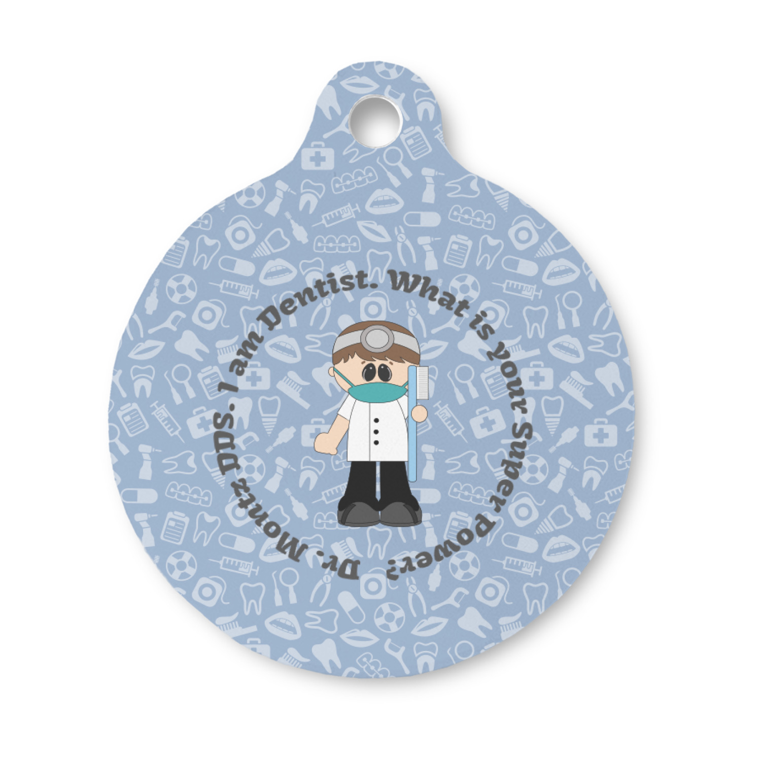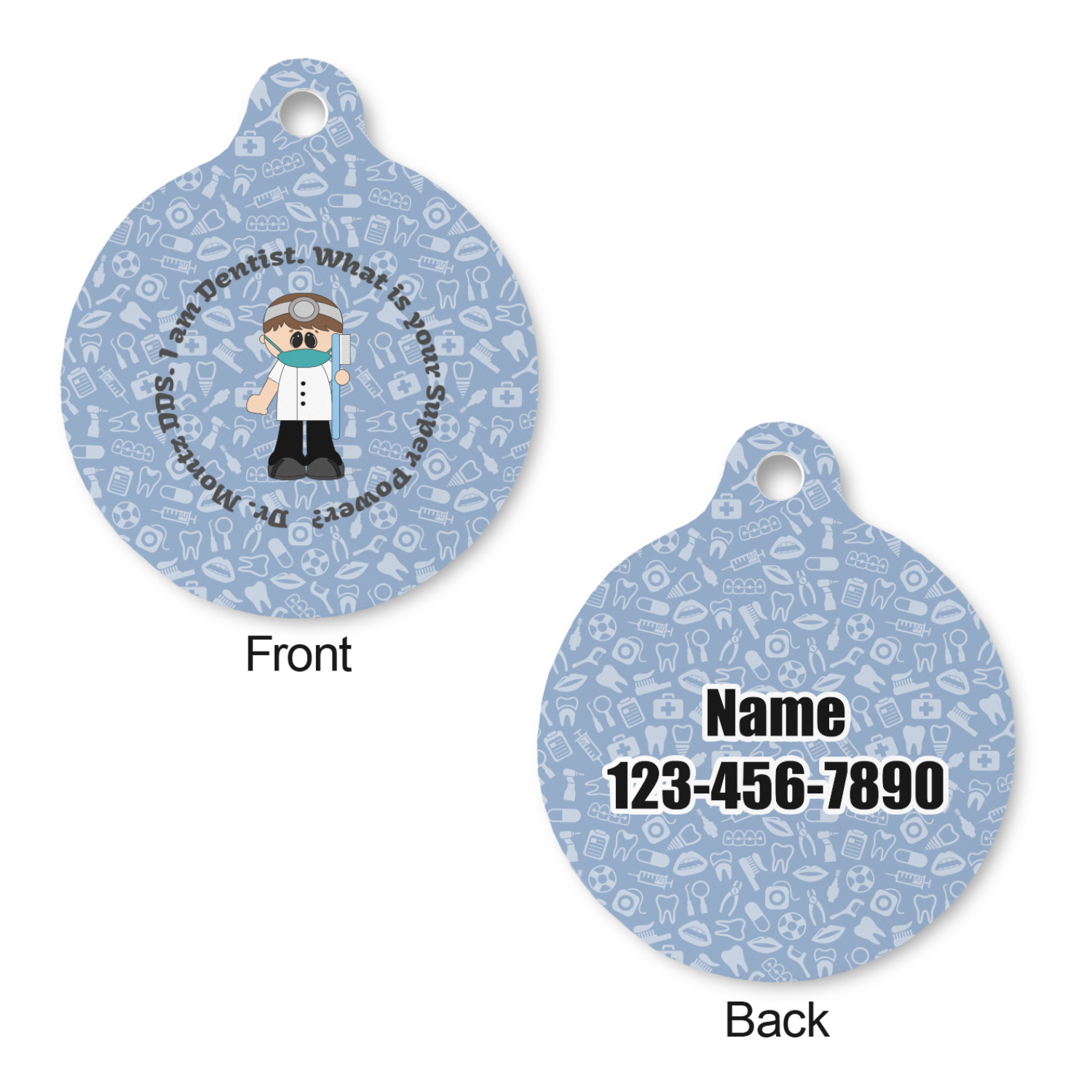 Go ahead; skip the monotony of plain pet ID tags with your very own, customized & personalized, round pet tag! This pet ID tag, fitting for both cats and dogs, will catch the eye of any onlooker (humans, canines, and felines, alike!) and accentuate your pet's individual personality.