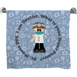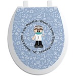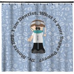 This design is a light blue with dark blue accents in its background. The design features a fun little cartoon dentist that will just make you smile. The text surrounding the little dentist will be the perfect place for a dentist pun or your name!