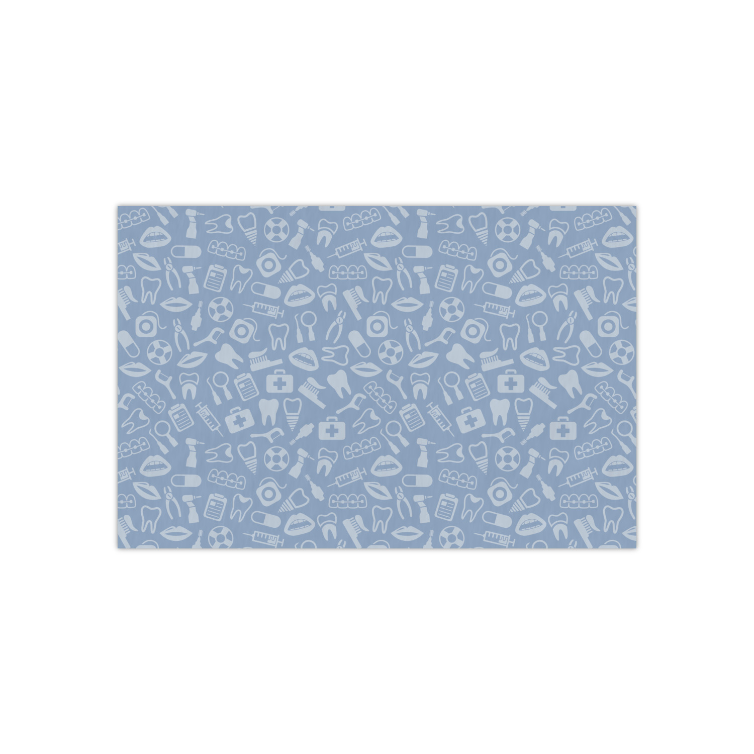 This design is a light blue with dark blue accents in its background. The design features a fun little cartoon dentist that will just make you smile. The text surrounding the little dentist will be the perfect place for a dentist pun or your name!