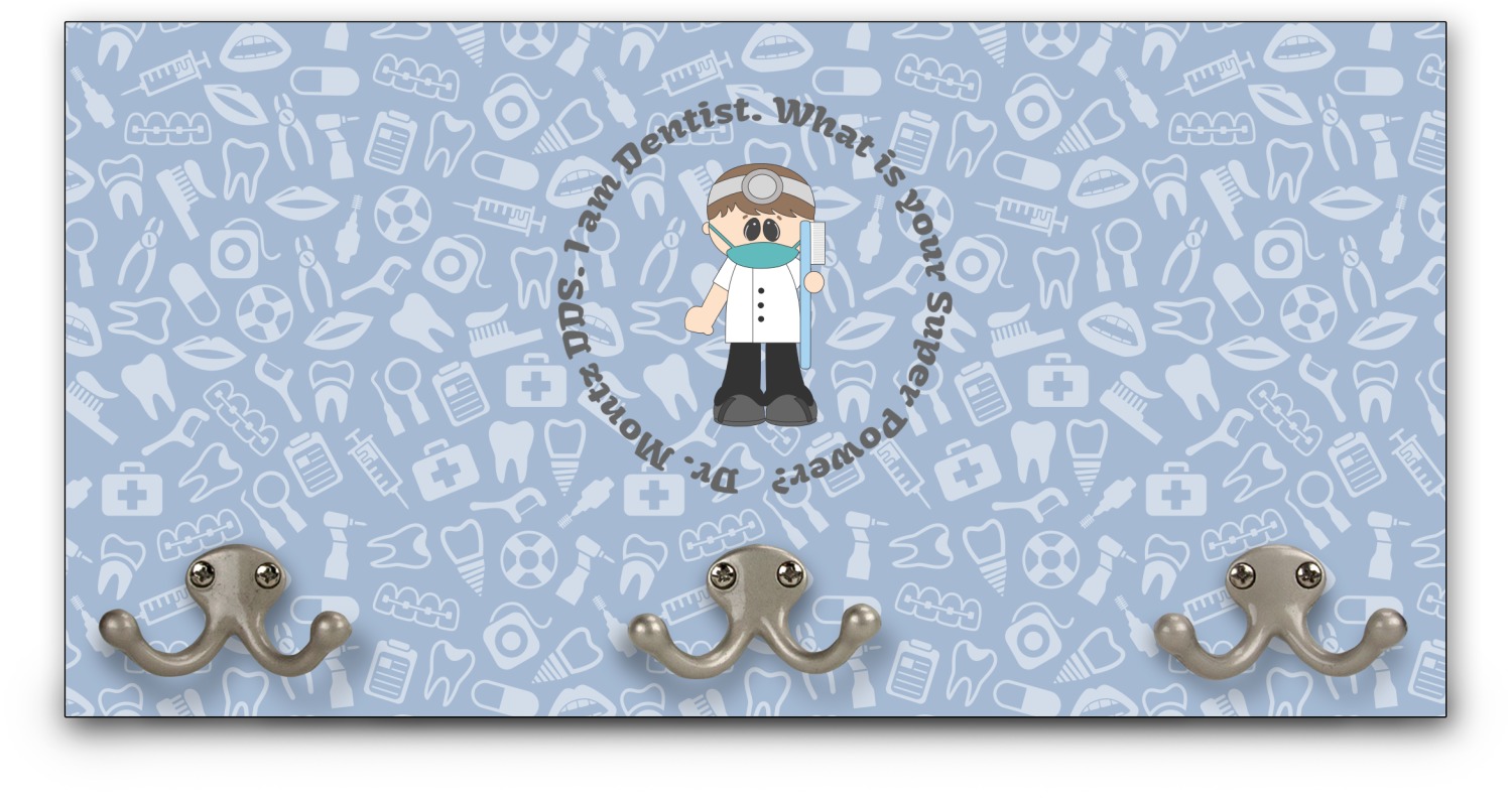 This coat rack is the perfect way to add some personality to your wall or entryway. The board is made of a strong maple that is approximately 16" x 8". The three 2-prong hooks are a sturdy metal that have three screws attaching them to the board. Your design is printed right onto the front of the board while the back and sides are a simple black.
