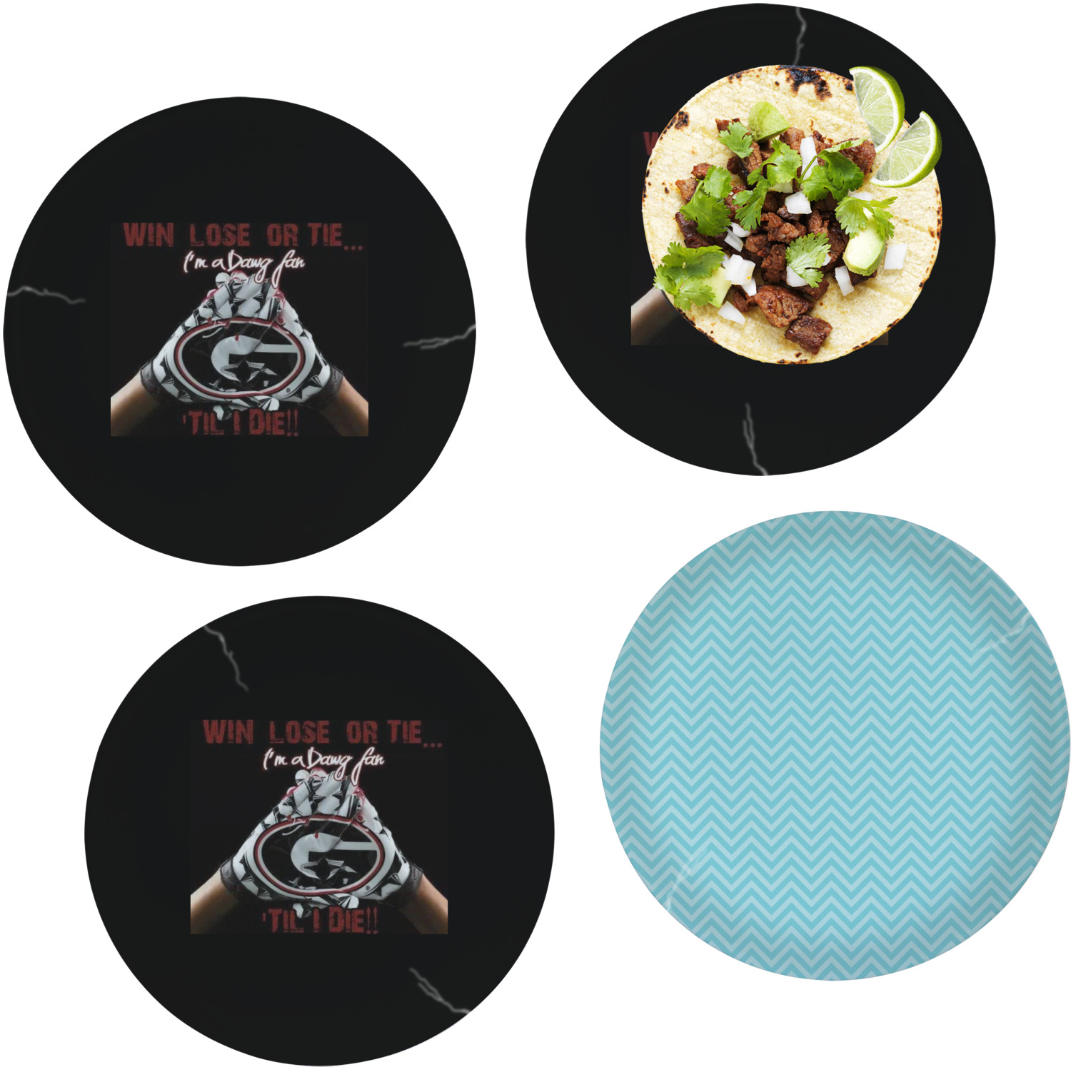 With a huge catalog of designs and patterns, these plates are completely customizable. Feeling extra hungry? Choose a foodie design, complete with red-hot chili peppers, apples, lemons, or even coffee. Of course, you always have the option to go classic with stripes or plaid. It's entirely up to you!