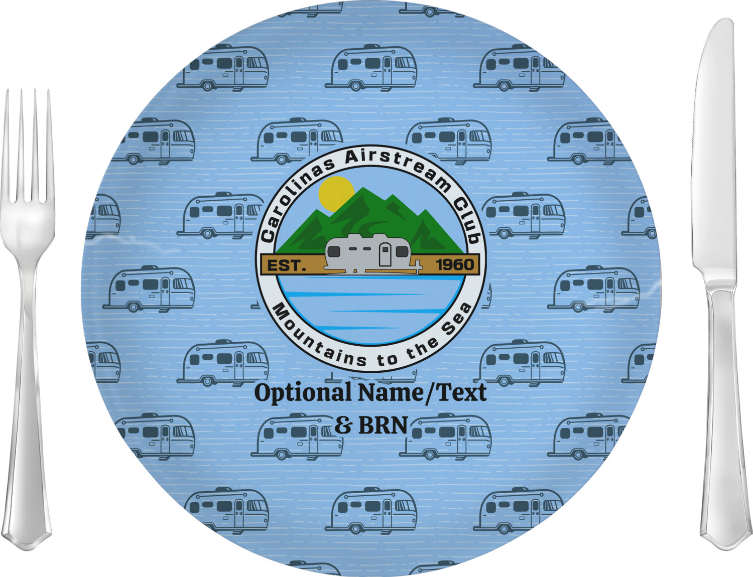 Carolina Airstream Club Design on Custom 10" Glass Lunch / Dinner Plate