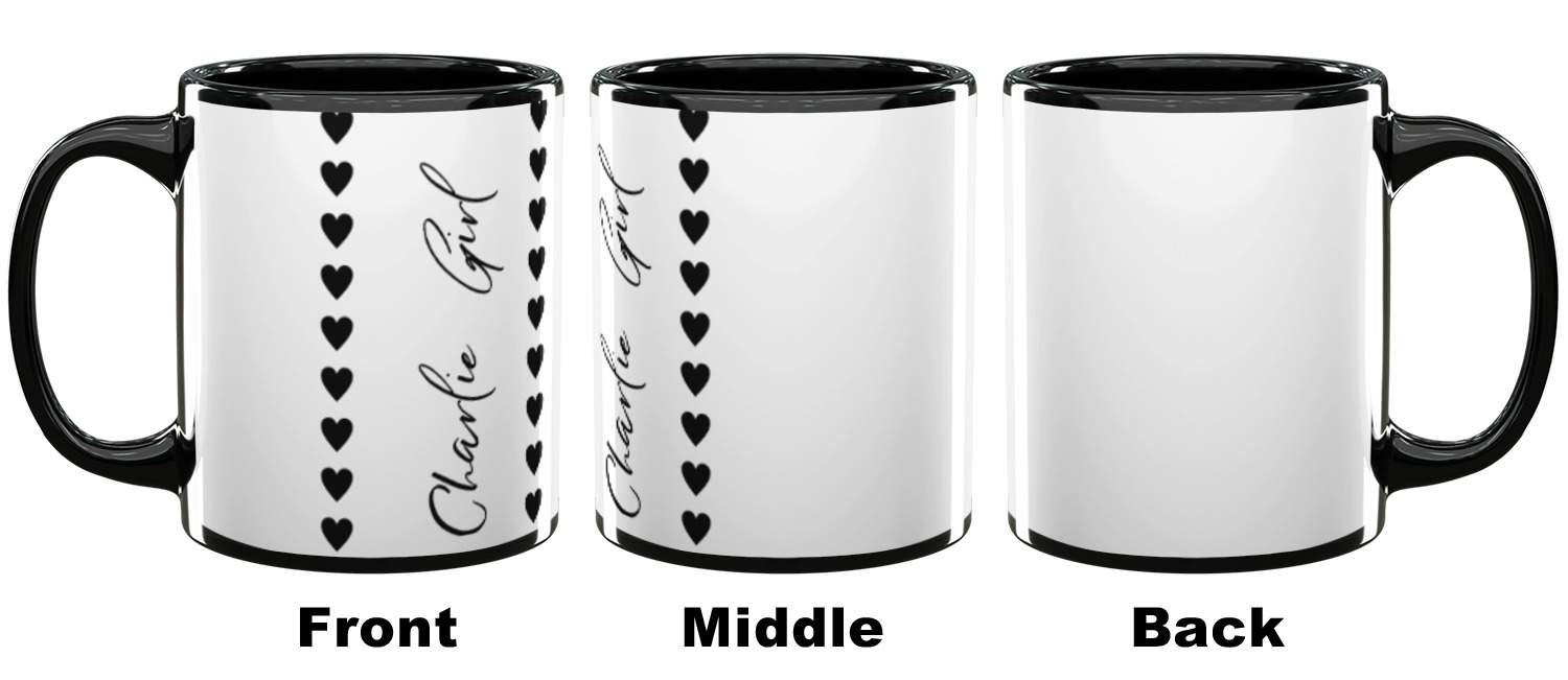 Our ceramic mugs have your design or photo printed along the surface with a gloss finish. The ceramic material of our mugs is dishwasher and microwave safe so you can reheat your tea or coffee if needed! We offer two different base colors with multiple mug sizes. The white ceramic mugs come in three size options - 11 oz., 15 oz., and 20 oz. Our black ceramic mugs are sold in either 11 oz. or 15 oz. sizes.