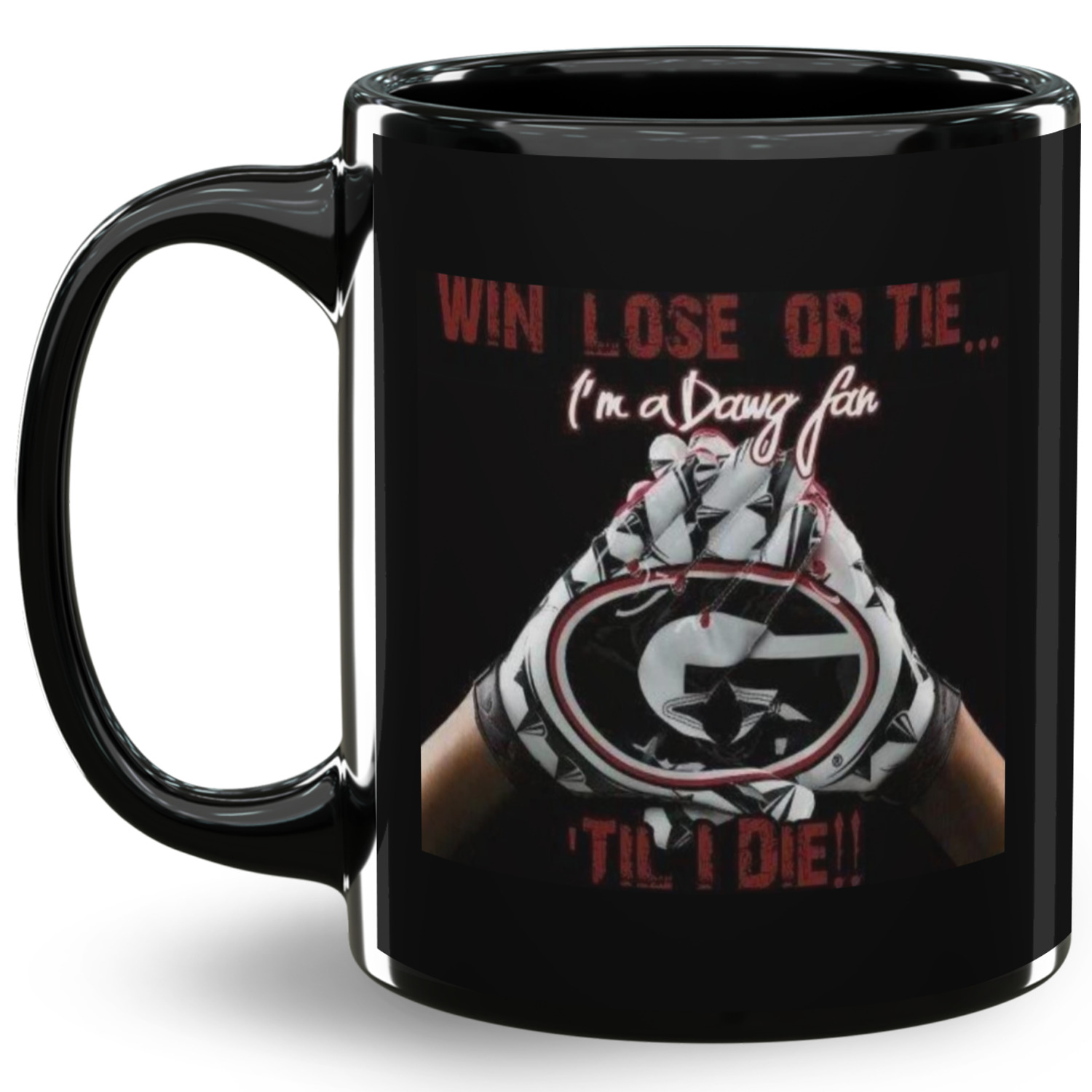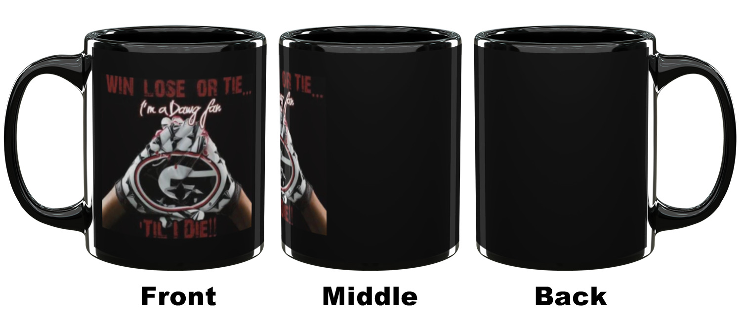 Our ceramic mugs have your design or photo printed along the surface with a gloss finish. The ceramic material of our mugs is dishwasher and microwave safe so you can reheat your tea or coffee if needed! We offer two different base colors with multiple mug sizes. The white ceramic mugs come in three size options - 11 oz., 15 oz., and 20 oz. Our black ceramic mugs are sold in either 11 oz. or 15 oz. sizes.