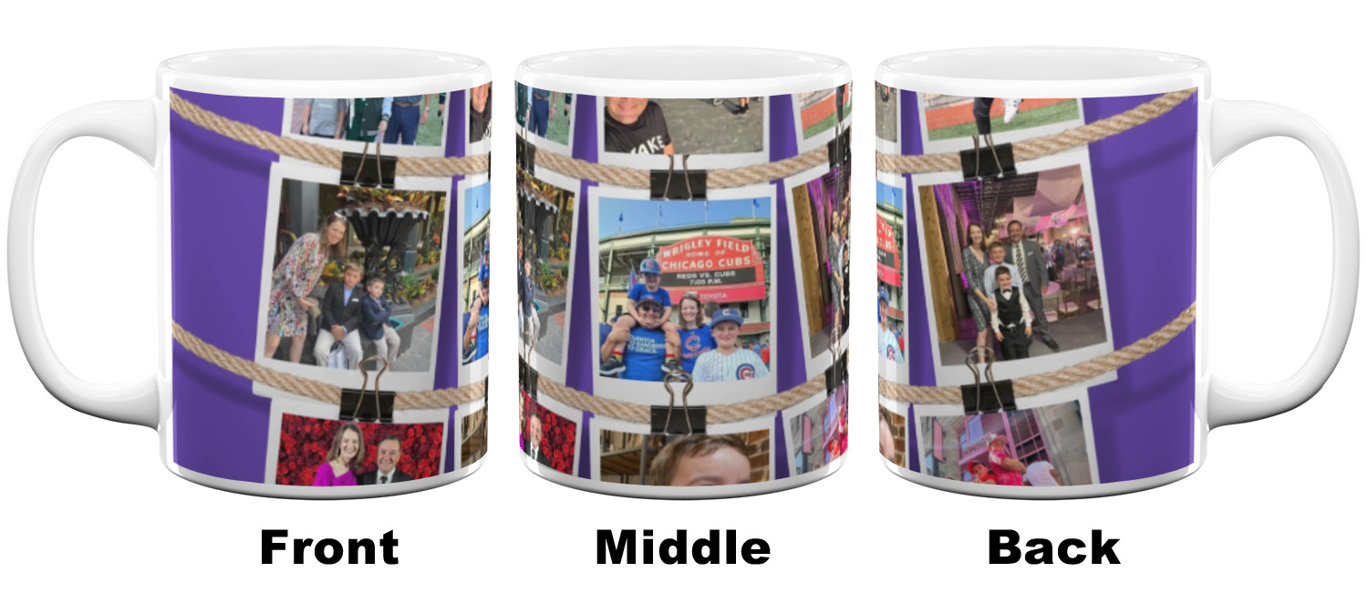 Our ceramic mugs have your design or photo printed along the surface with a gloss finish. The ceramic material of our mugs is dishwasher and microwave safe so you can reheat your tea or coffee if needed! We offer two different base colors with multiple mug sizes. The white ceramic mugs come in three size options - 11 oz., 15 oz., and 20 oz. Our black ceramic mugs are sold in either 11 oz. or 15 oz. sizes.
