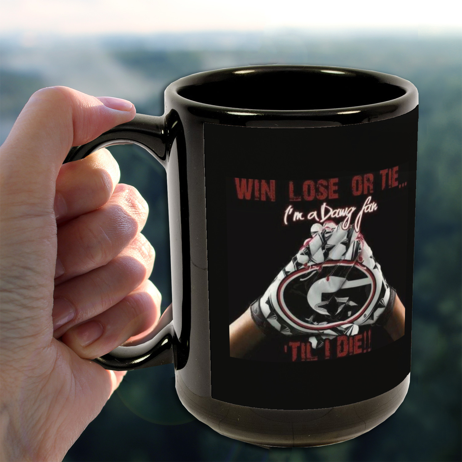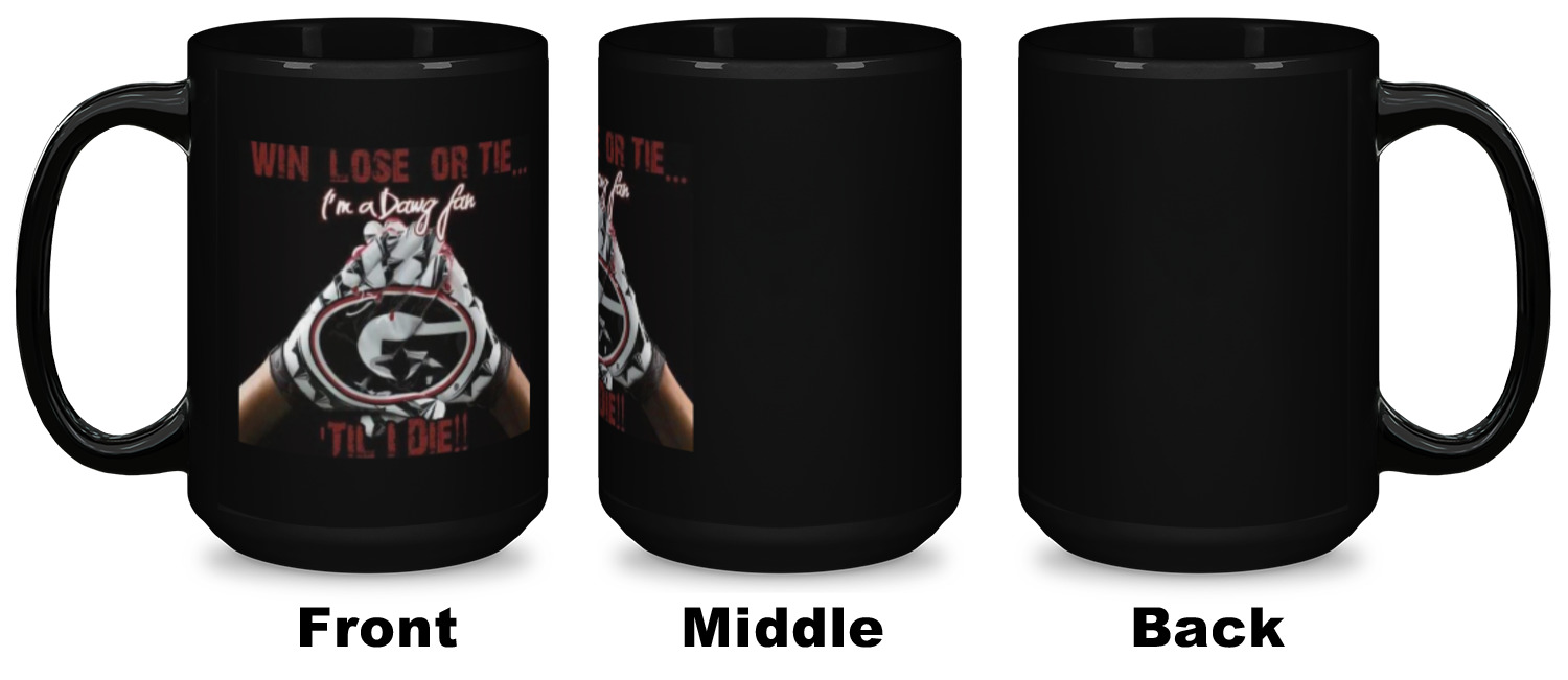 Our ceramic mugs have your design or photo printed along the surface with a gloss finish. The ceramic material of our mugs is dishwasher and microwave safe so you can reheat your tea or coffee if needed! We offer two different base colors with multiple mug sizes. The white ceramic mugs come in three size options - 11 oz., 15 oz., and 20 oz. Our black ceramic mugs are sold in either 11 oz. or 15 oz. sizes.