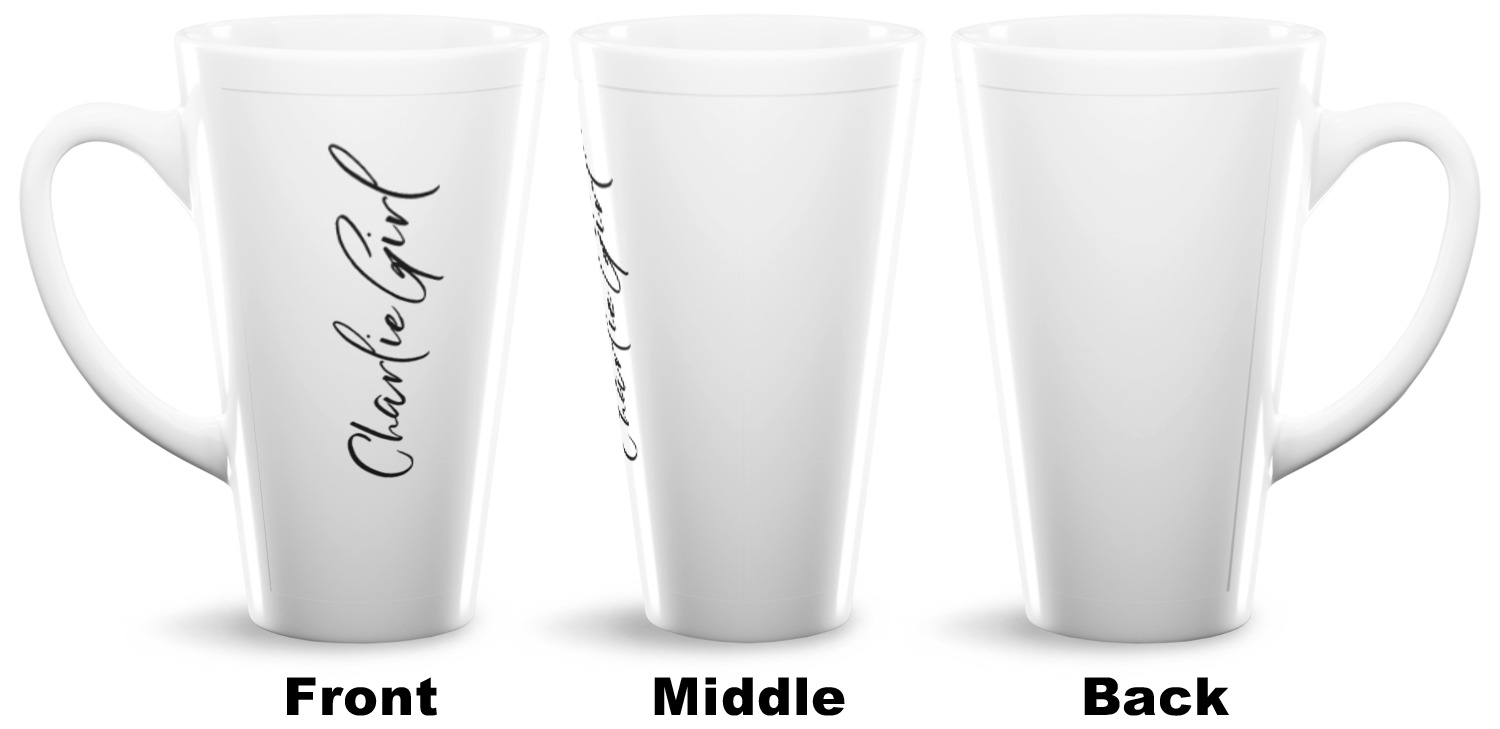 Sip and stay cozy with our custom latte mugs! Mugs are a simple gift for anyone, but make yours unique by personalizing our ceramic mugs for you and your close ones! Our tall latte mugs are great for an iced latte to start your day or the perfect size for some extra warm tea before bed! Use our smaller latte mugs to practice latte art! Browse our many designs, create your own, upload a photo or logo, and more with our online design studio!