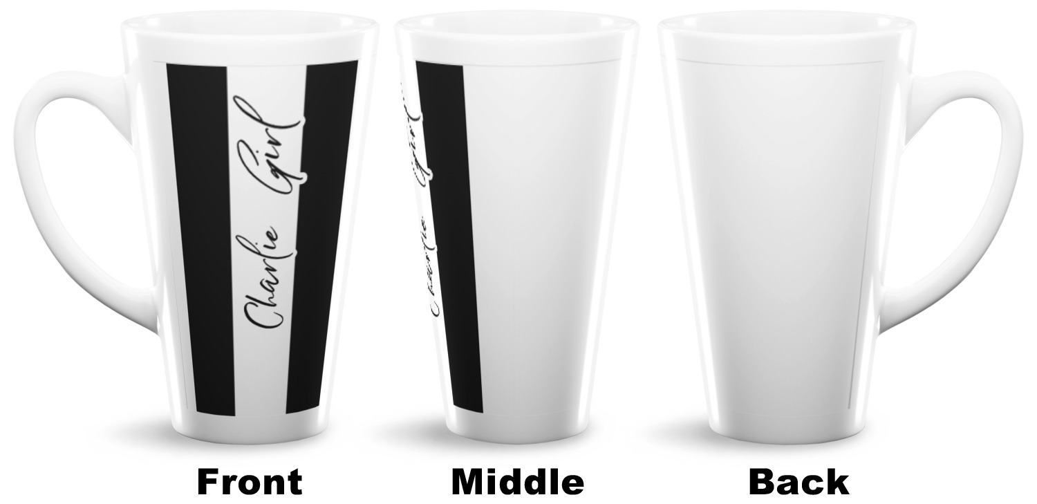 Sip and stay cozy with our custom latte mugs! Mugs are a simple gift for anyone, but make yours unique by personalizing our ceramic mugs for you and your close ones! Our tall latte mugs are great for an iced latte to start your day or the perfect size for some extra warm tea before bed! Use our smaller latte mugs to practice latte art! Browse our many designs, create your own, upload a photo or logo, and more with our online design studio!