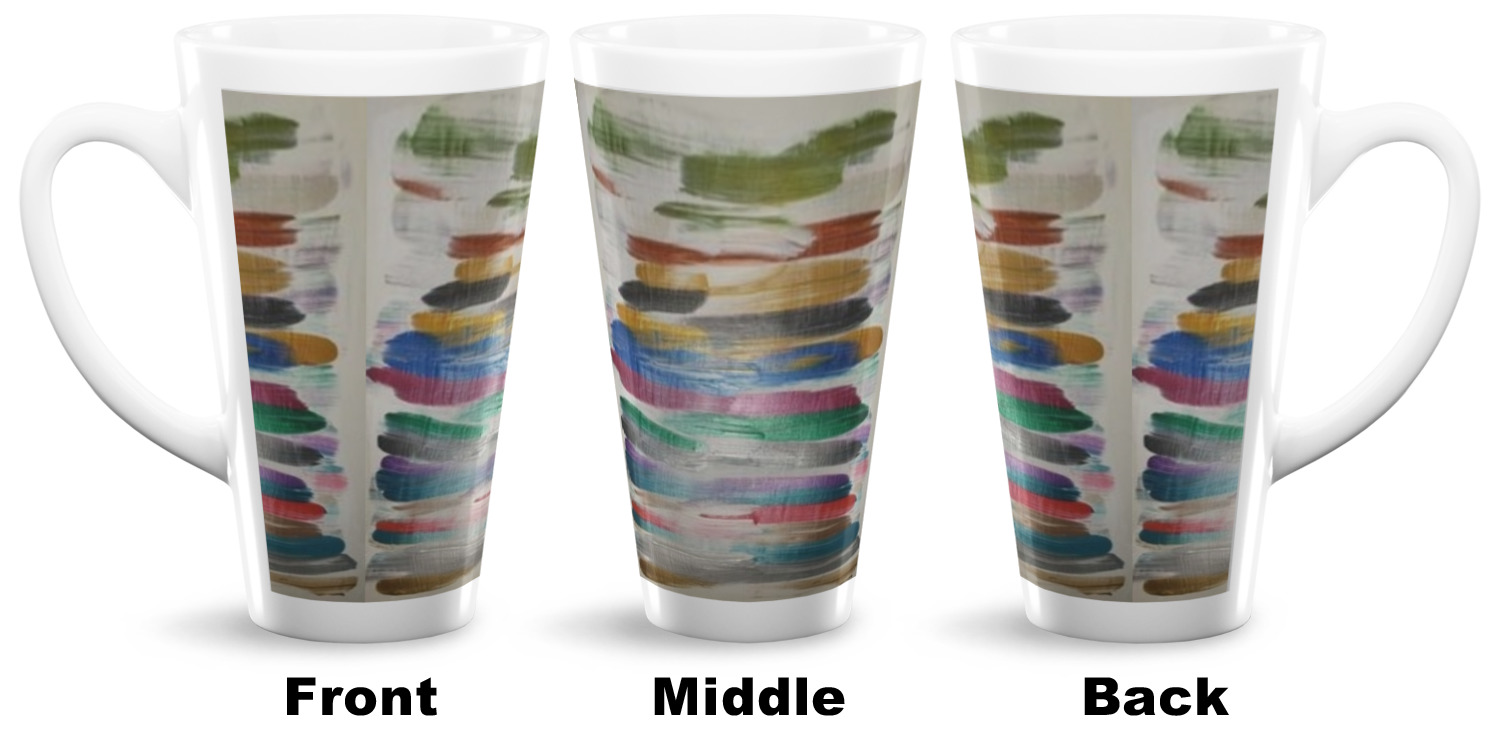 Choose from one of our two ceramic latte mug sizes. Our 12oz latte cups are great for a few shots of espresso or some tea before bed. The 16oz mug is a tall latte mug perfect to hold iced coffee or give you extra room to sip your favorite drink. We print your design with a glossy finish wrapping around the outside of the ceramic mug, so make sure your design is displayed to your ideal vision!