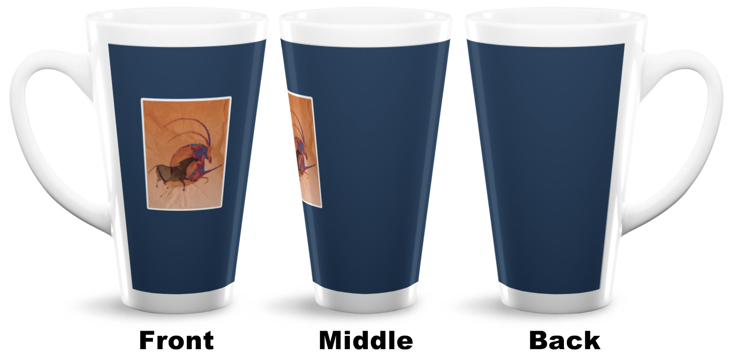 Choose from one of our two ceramic latte mug sizes. Our 12oz latte cups are great for a few shots of espresso or some tea before bed. The 16oz mug is a tall latte mug perfect to hold iced coffee or give you extra room to sip your favorite drink. We print your design with a glossy finish wrapping around the outside of the ceramic mug, so make sure your design is displayed to your ideal vision!