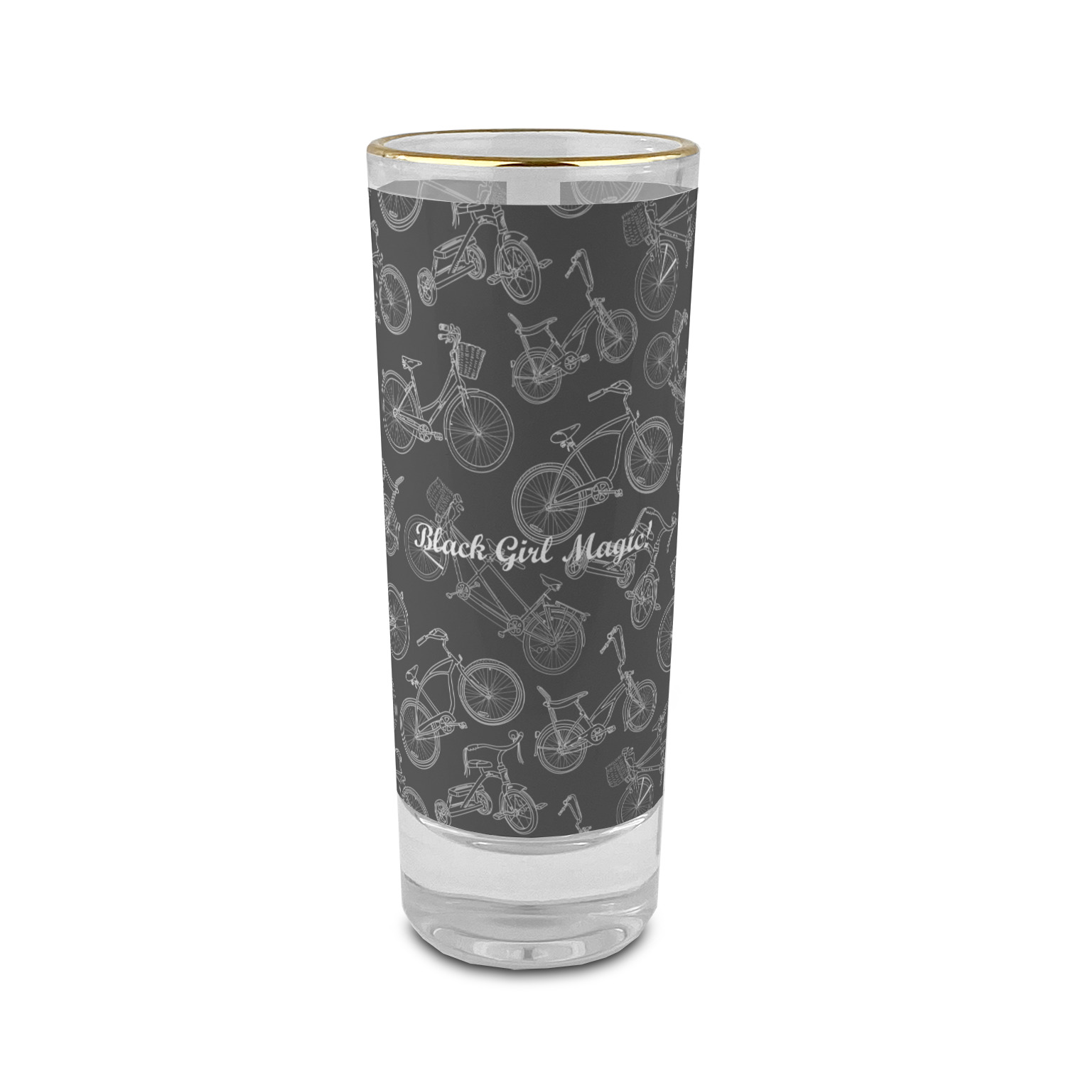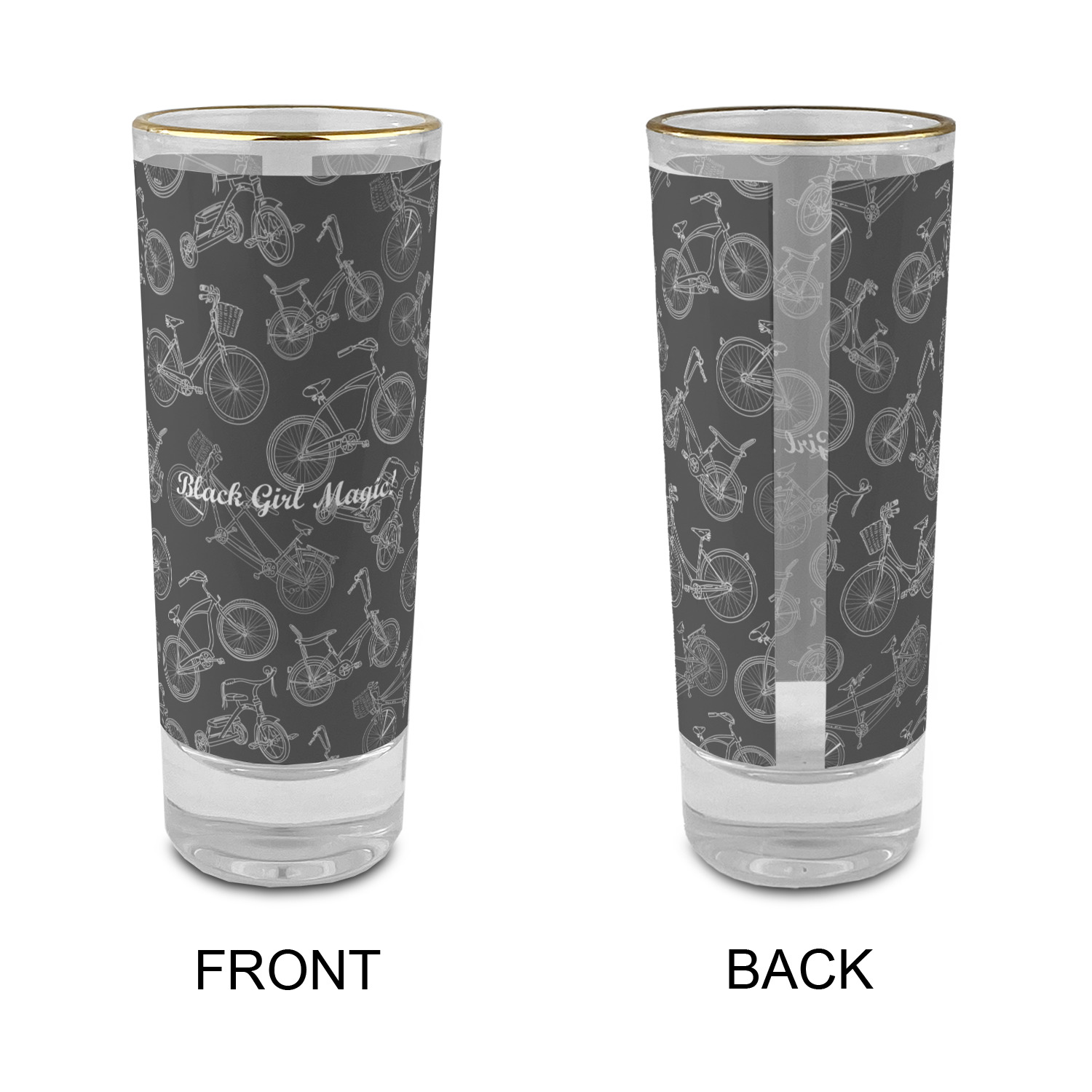 These glass shooter glasses are printed in full color with the design of your choice. These are a tall shooter 2 oz size and stand 4" tall. The print is a full wrap design to boldly display your personalization.