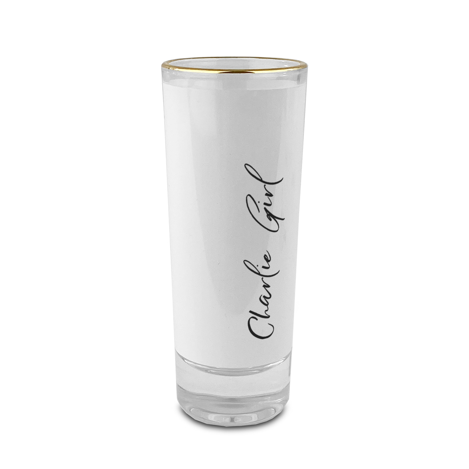 These glass shooter glasses are printed in full color with the design of your choice. These are a tall shooter 2 oz size and stand 4" tall. The print is a full wrap design to boldly display your personalization.