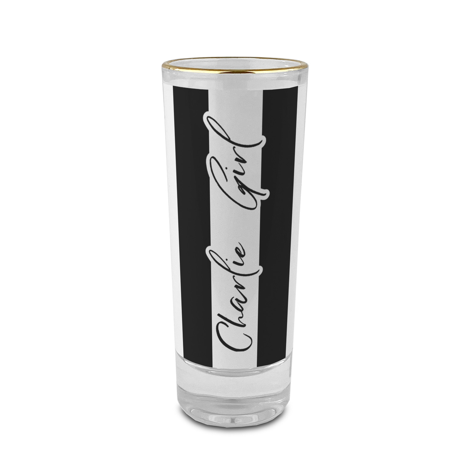 These glass shooter glasses are printed in full color with the design of your choice. These are a tall shooter 2 oz size and stand 4" tall. The print is a full wrap design to boldly display your personalization.