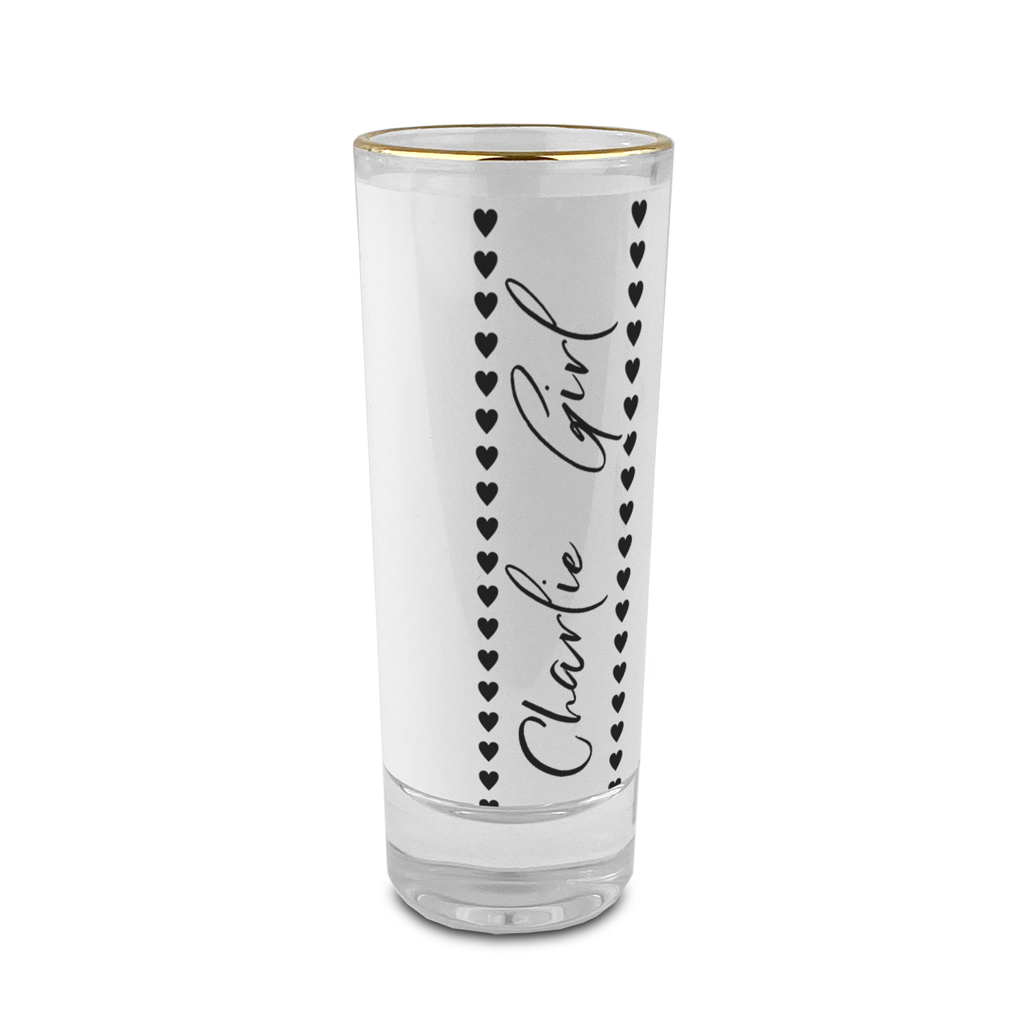 These glass shooter glasses are printed in full color with the design of your choice. These are a tall shooter 2 oz size and stand 4" tall. The print is a full wrap design to boldly display your personalization.