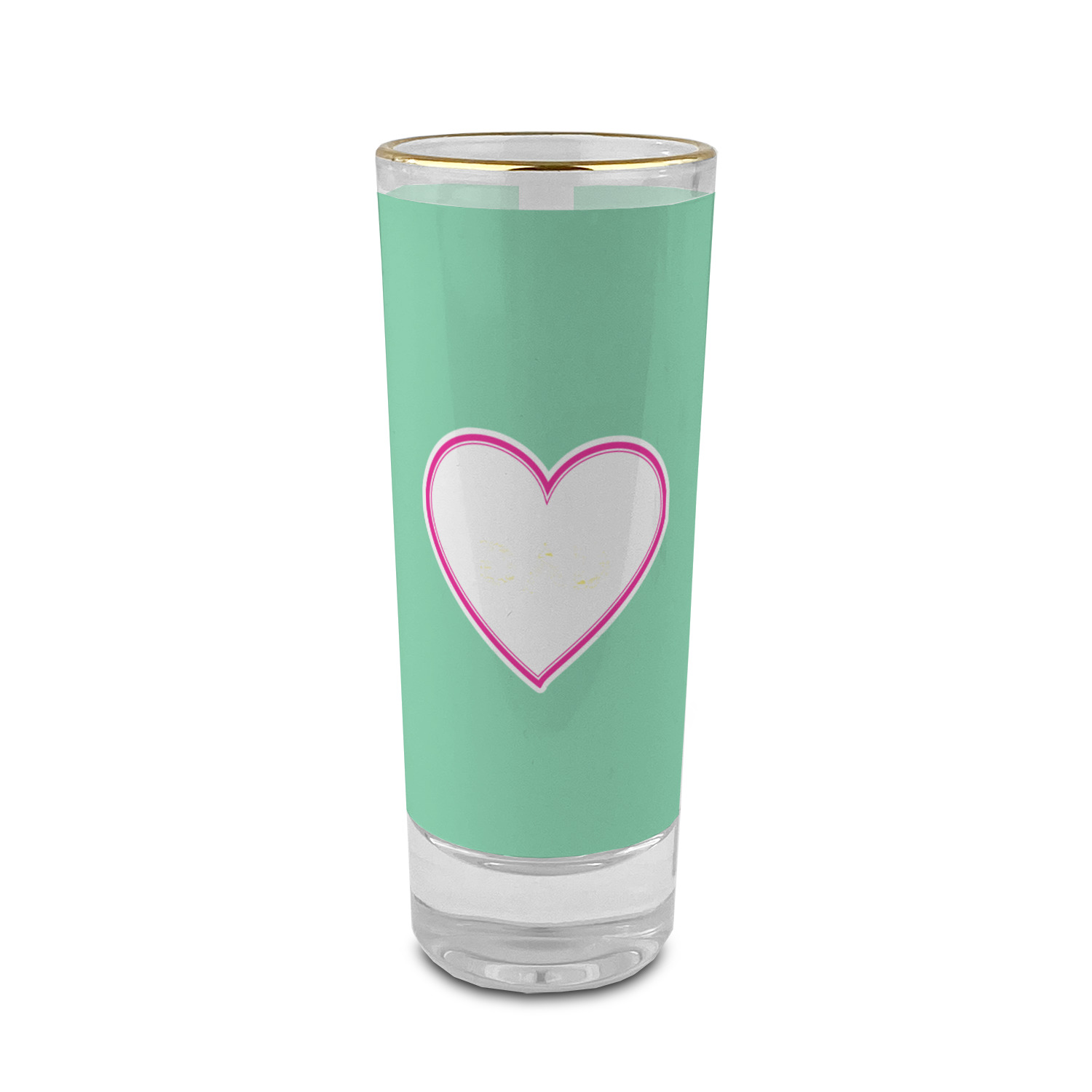 These glass shooter glasses are printed in full color with the design of your choice. These are a tall shooter 2 oz size and stand 4" tall. The print is a full wrap design to boldly display your personalization.