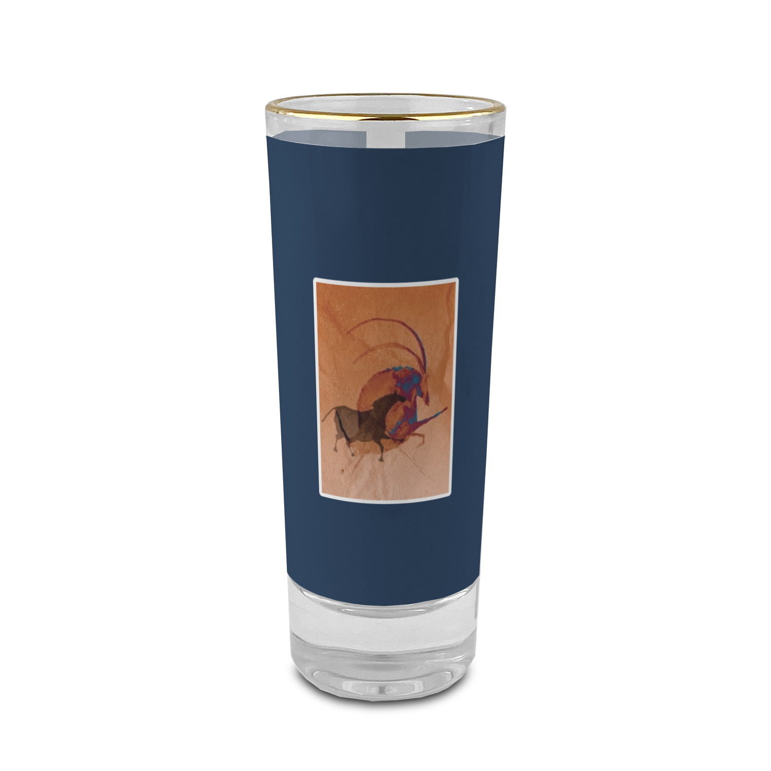 These glass shooter glasses are printed in full color with the design of your choice. These are a tall shooter 2 oz size and stand 4" tall. The print is a full wrap design to boldly display your personalization.