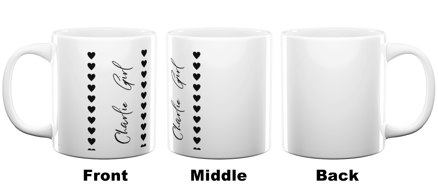 Our ceramic mugs have your design or photo printed along the surface with a gloss finish. The ceramic material of our mugs is dishwasher and microwave safe so you can reheat your tea or coffee if needed! We offer two different base colors with multiple mug sizes. The white ceramic mugs come in three size options - 11 oz., 15 oz., and 20 oz. Our black ceramic mugs are sold in either 11 oz. or 15 oz. sizes.