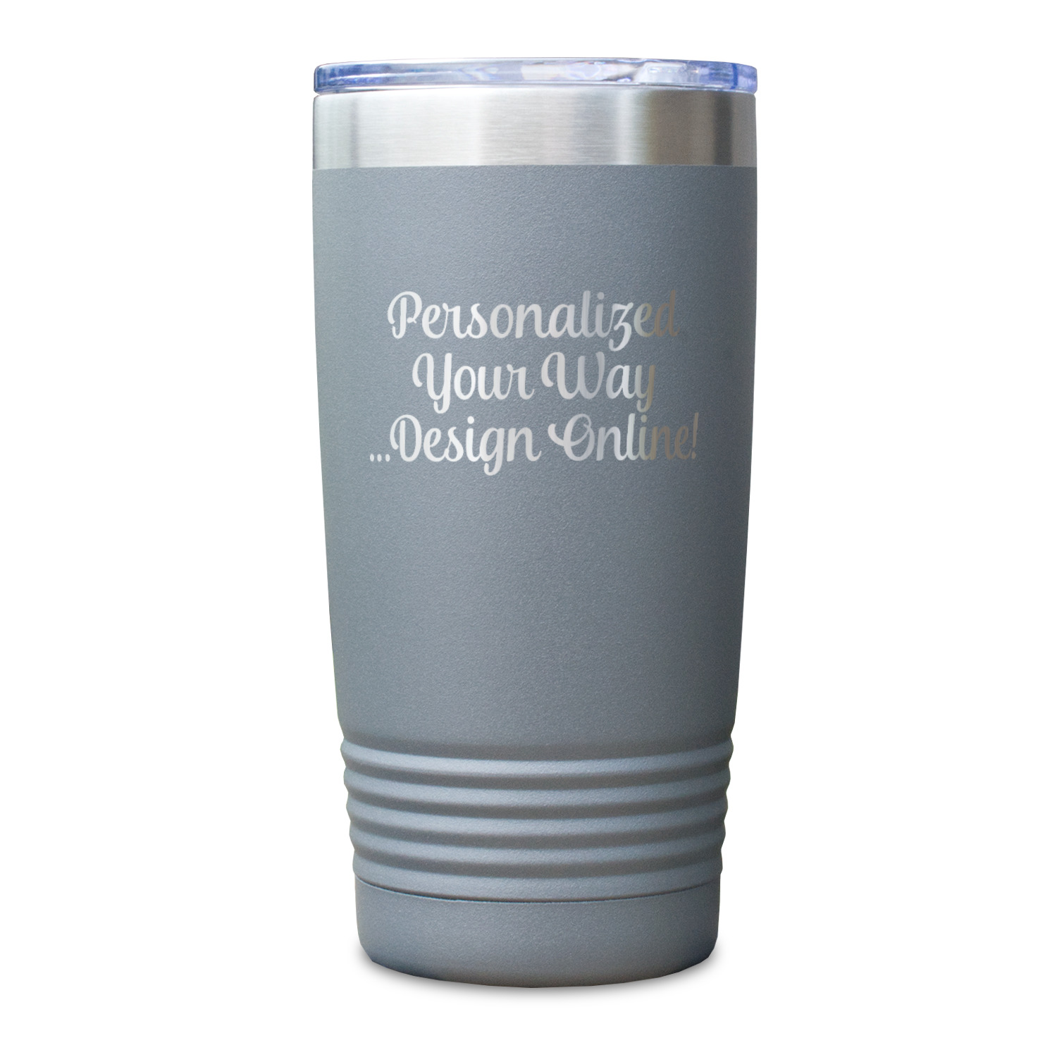 With our personalized 20 oz double wall stainless steel tumblers, you'll never have to settle for a plain, boring tumbler again! These tumblers will be a wonderful addition to your drinkware collection and will make those long commutes much brighter. Personalize one for yourself, or give these personalized tumblers as a gift to relatives, friends, or coworkers!