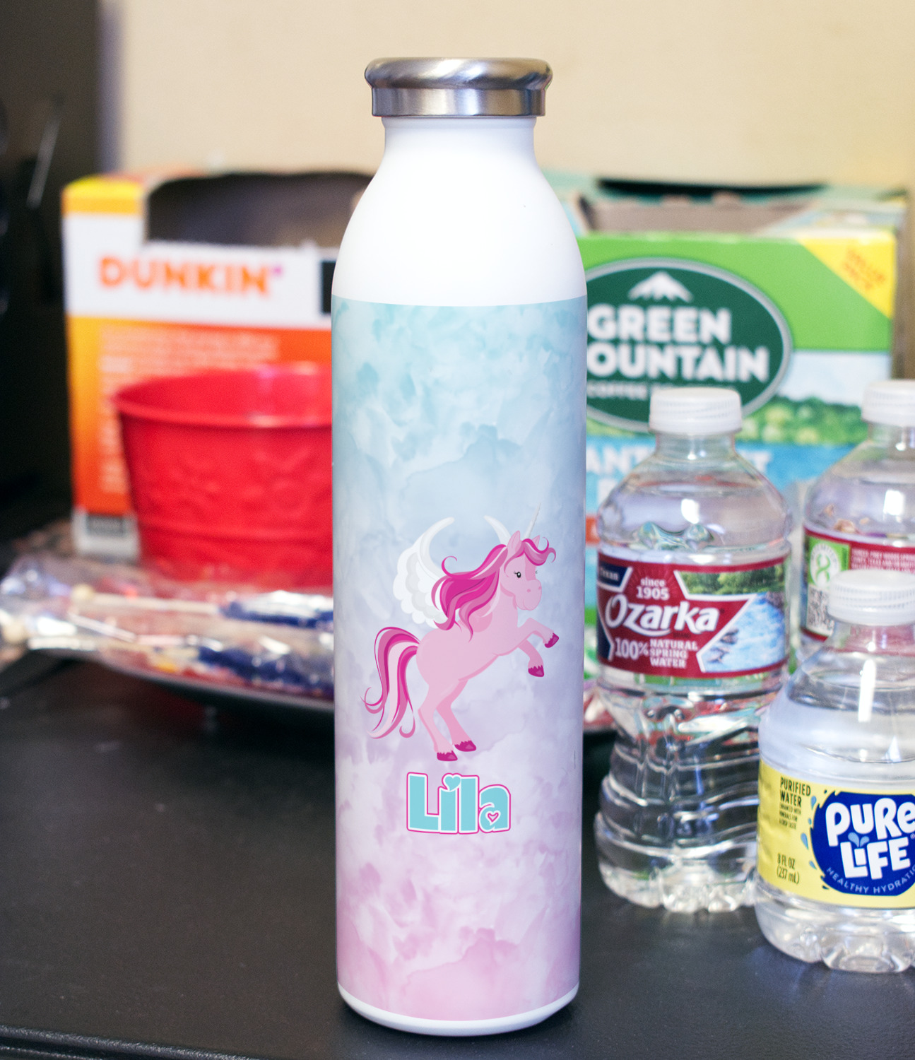 With the double wall insulated construction this bottle will keep drinks cold for 24 hours and hot for 12 hours. The large size allows for a beautiful large artwork space to allow you to make this bottle all your own.