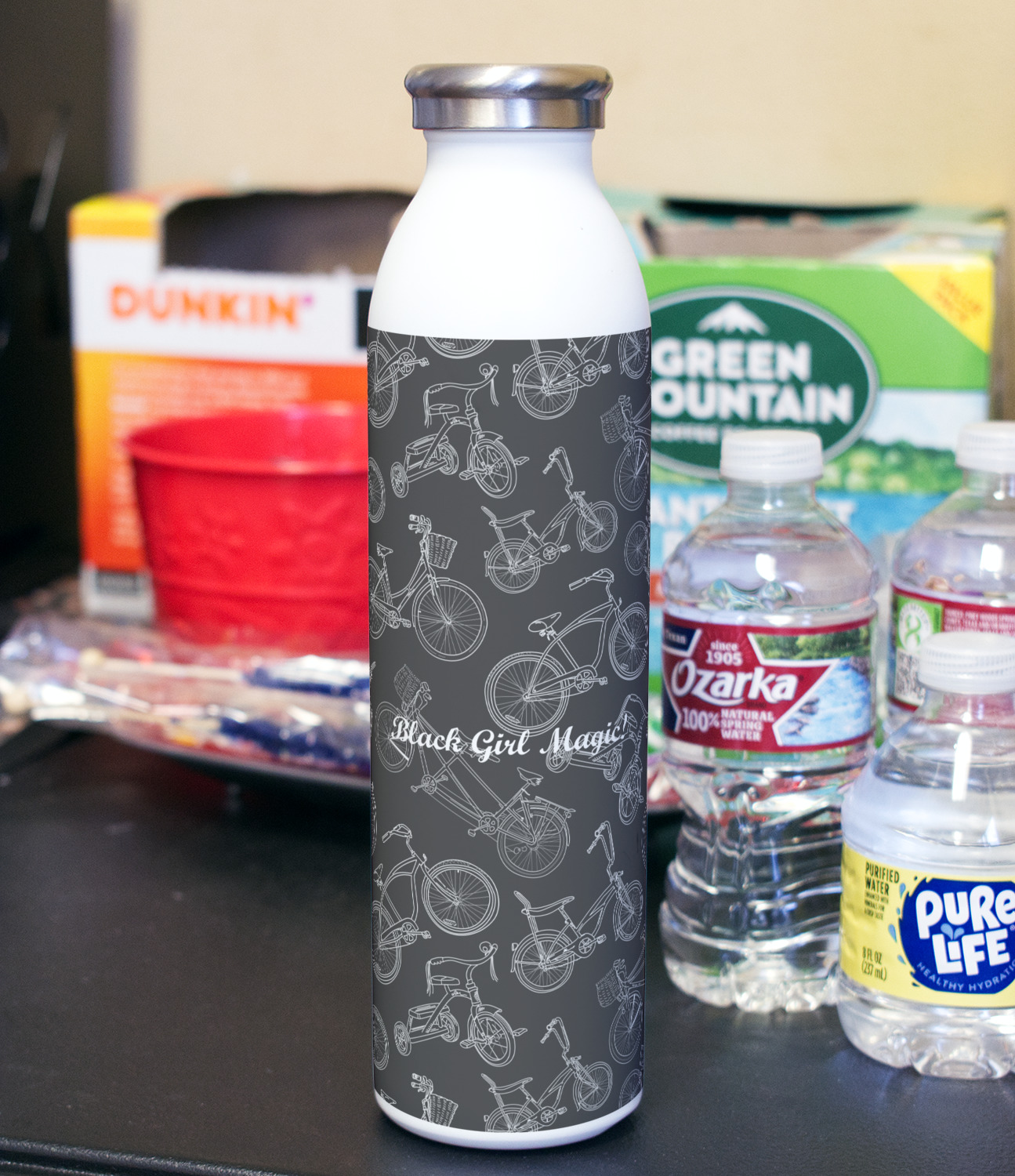 With the double wall insulated construction this bottle will keep drinks cold for 24 hours and hot for 12 hours. The large size allows for a beautiful large artwork space to allow you to make this bottle all your own.