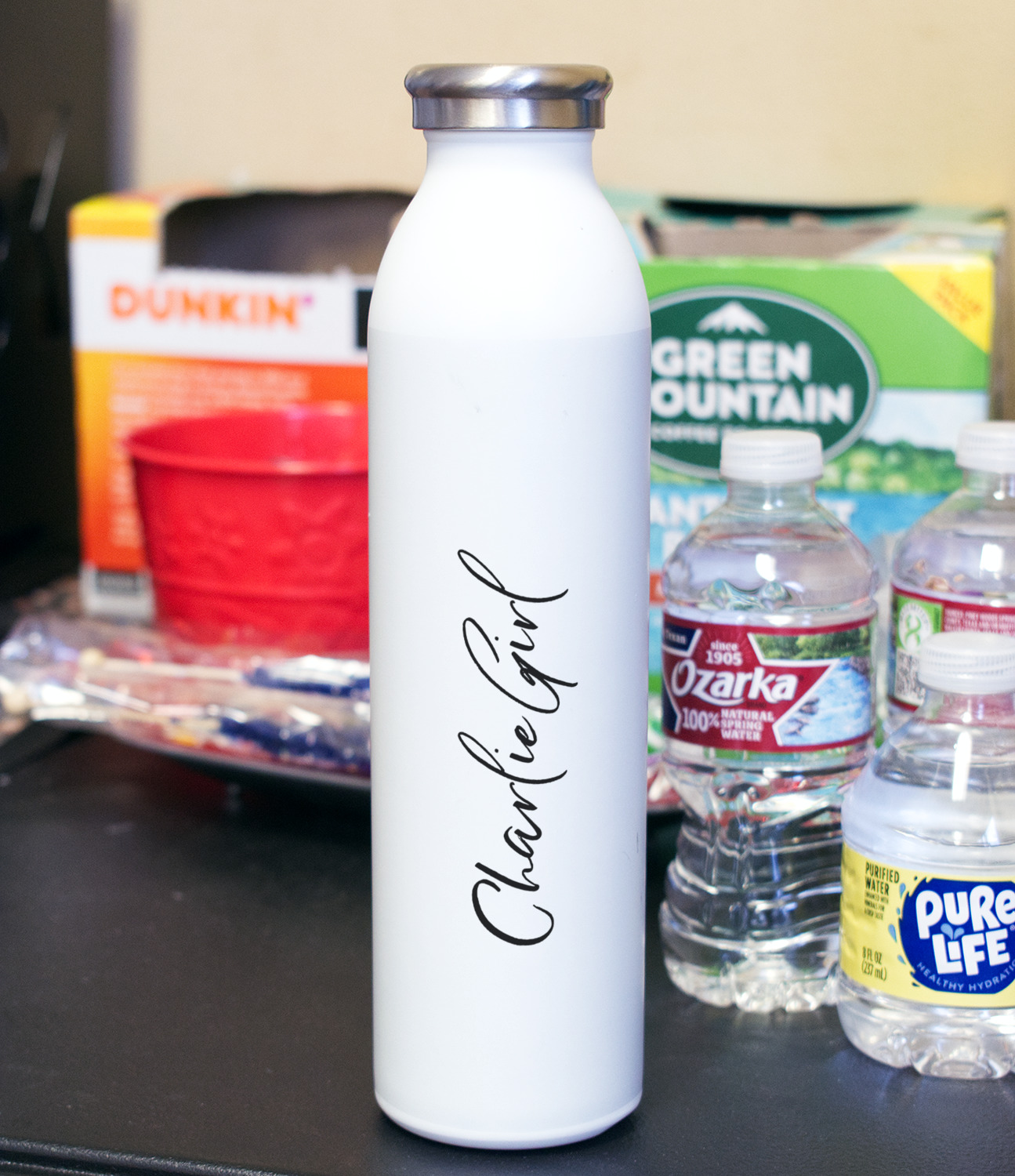 With the double wall insulated construction this bottle will keep drinks cold for 24 hours and hot for 12 hours. The large size allows for a beautiful large artwork space to allow you to make this bottle all your own.